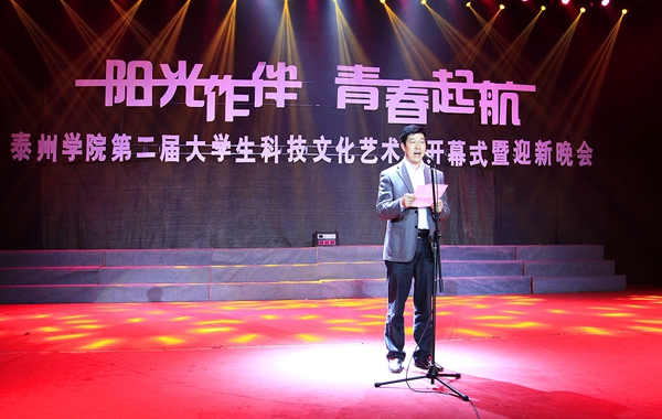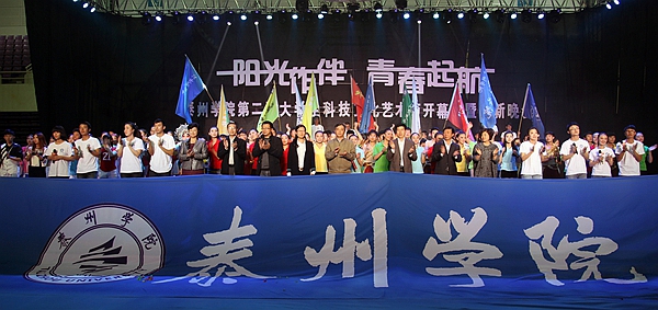 伴随着宛转悠扬的旋律,由人文公司、广播站表演的配乐诗歌朗诵《梦开始的地方》情真意切,表达了泰院学子对公司满腔的热爱;音乐公司同学表演的舞蹈《水姑娘》舞姿曼妙;“梅韵流芳”京剧社在省级比赛中折桂的京剧作品《梨花颂》韵味十足;音乐公司师生联袂表演的船工号子《水乡船韵》,迅速点燃了现场的热情;教育科学公司“丑小鸭”话剧社表演的原创小品《爱之韵》,默默传递着师生之间感人至深的真挚情怀;“星回声”街舞社的街舞《Return of the king》high翻了全场;而各公司新生方阵的现场拉歌互动环节,更是将晚会一次次推向了高潮。最后,整场晚会在青春活泼的主题歌舞《梦想从这里起航》中圆满结束,同学们随着动感的音乐尽情地挥洒快乐、释放激情,整个体育场成了欢乐的海洋……