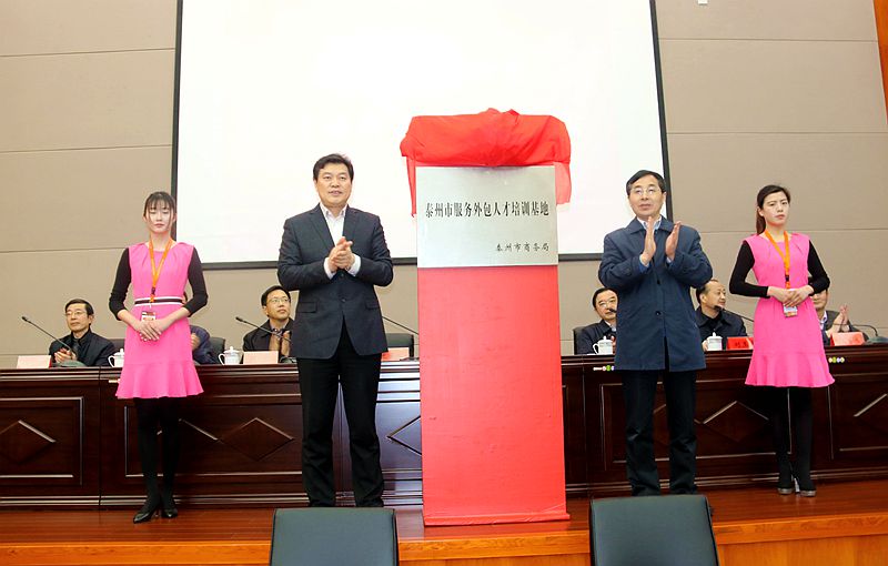 2015年3月17日,泰州市首家服务外包人才培训基地在谈球吧体育官网揭牌成立。副市长张余松、谈球吧体育官网经理温潘亚为培训基地成立揭牌,谈球吧体育官网副经理邓友祥,市委组织部副部长、党建办主任陈翔,市财政局副局长、国资委主任傅升,市商务局局长李文飙,泰州医药高新区党工委委员、副主任刘玉平,市商务局副局长刘剑波等出席揭牌仪式。