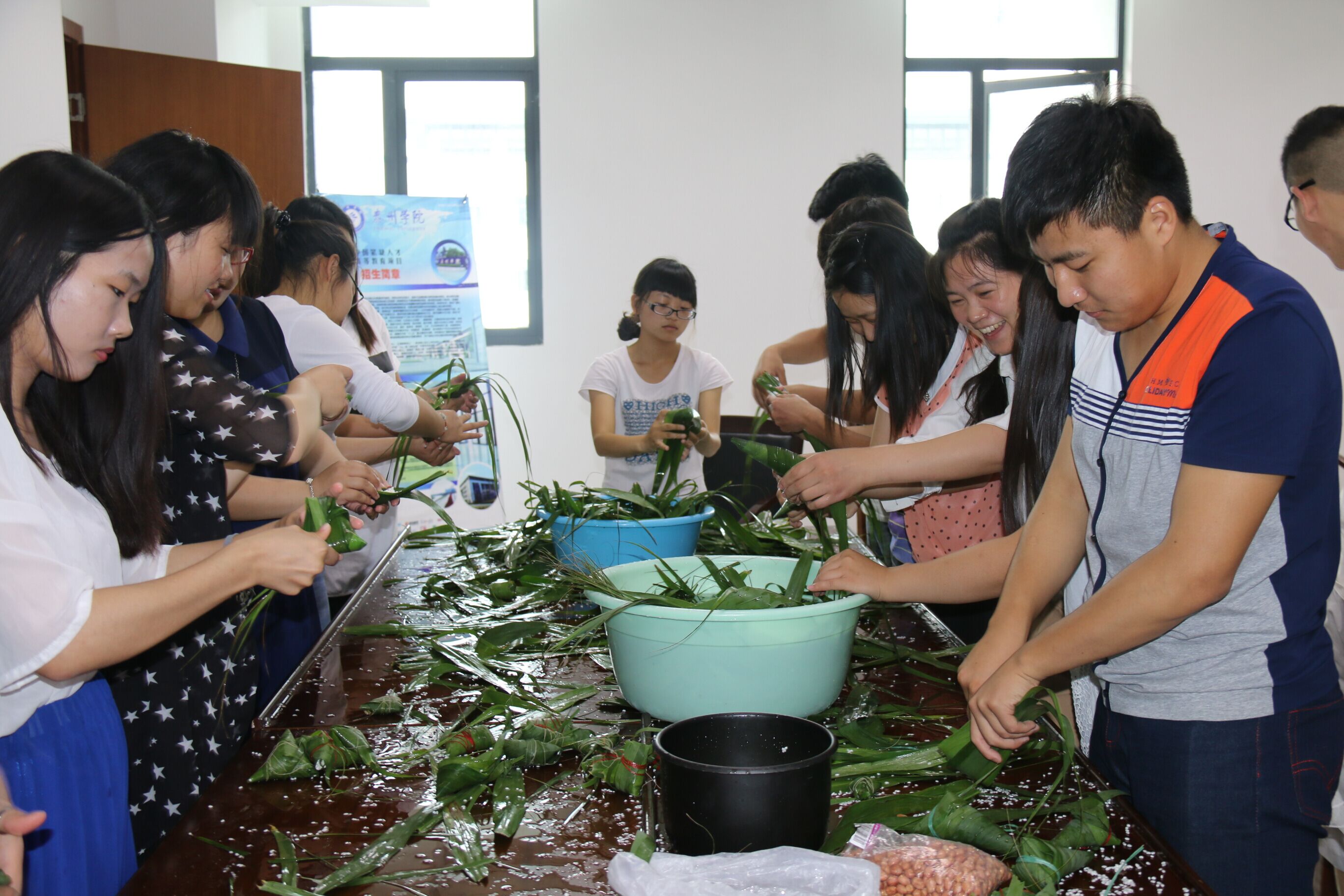 公司员工会成员、外省籍员工、部分教师共聚D2307室,现场工作人员讲解与端午有关的文化习俗和包粽子技巧,大家手把手的传授经验,自由分组学包粽子,进行包粽子比赛。有些同学虽然是第一次尝试包粽子,但是个个都跃跃欲试,他们精神饱满、劲头十足。随着 “开始”一声令下,糯米、大枣、花生、粽叶在他们灵巧的手中翻转飞舞,变成一个个美味的粽子。再经过一段时间的烹煮,香味扑鼻,美不可言。同学们及时把包含爱心和节日祝福的粽子送给老师们品尝,表达对老师们的感恩之情,也让老师们分享大家的喜悦,活动在大家的欢声笑语中结束。
