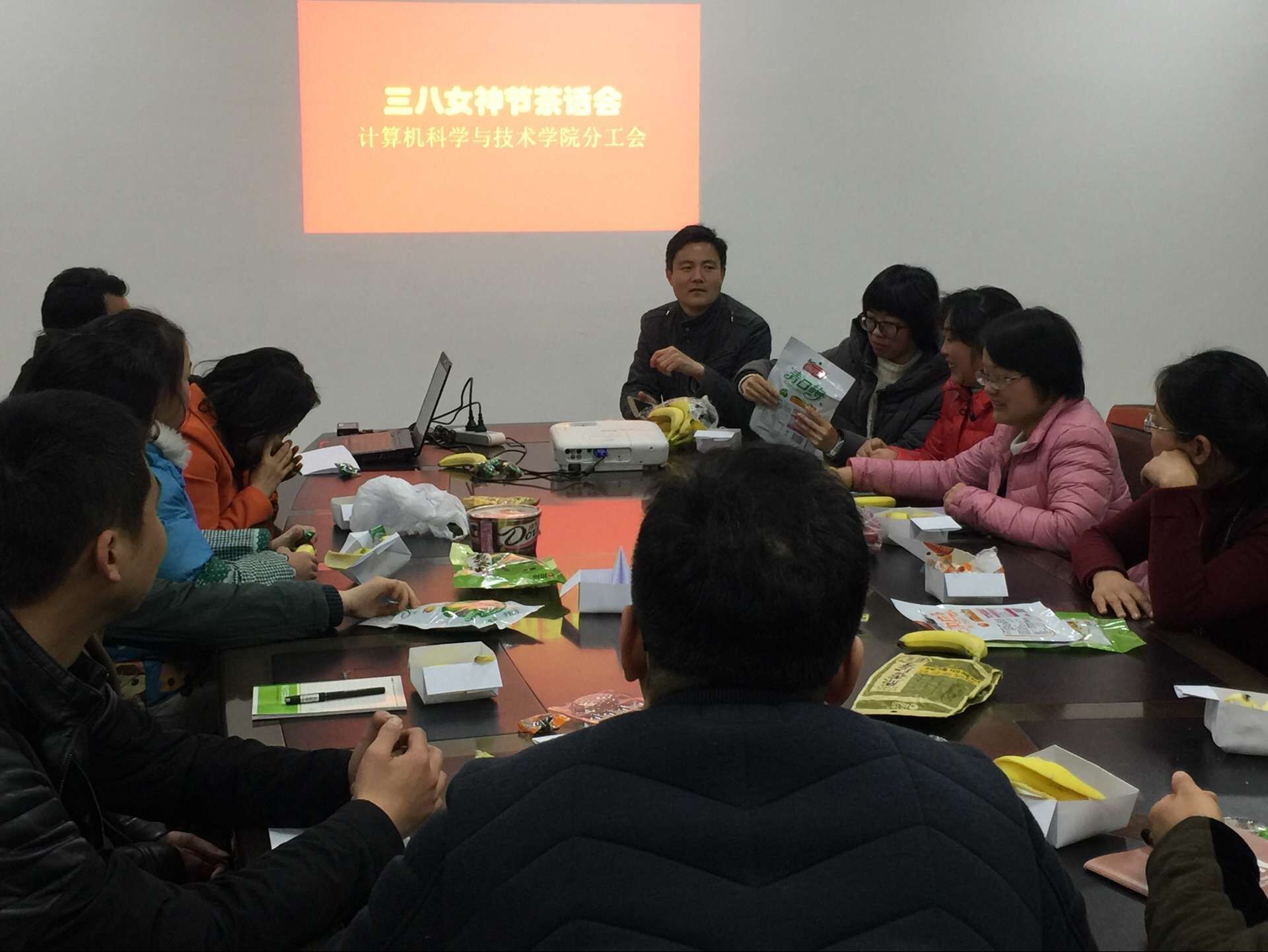 2017年3月8日下午午,为庆祝“三八”国际劳动妇女节107周年,进一步激发计算机公司教师爱岗敬业的热情,院分工会召开庆祝“三八”妇女节茶话会,经理张中国、书记陈茂国、女教师们、男教师们出席茶话会。