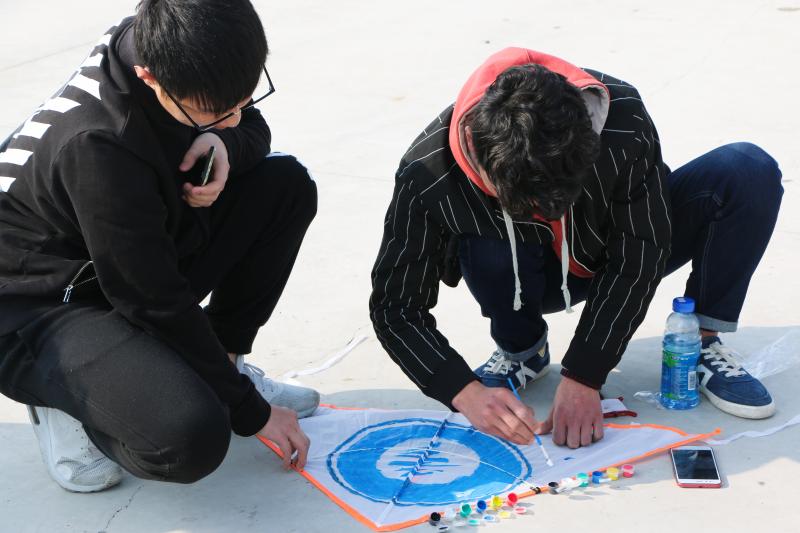 本次活动由风筝制作与风筝放飞两个环节组成。每一个创作团队成员相互配合,相互协调,分工井然。雪白的风筝画纸在同学们手上变得灵巧又美丽。样式新颖、各具特色的风筝逐渐成型。在风筝制作完成后,同学们在美丽的风筝上写上了各自的理想宣言放飞。现场评委根据造型、色彩、精致程度和风筝放飞的留空时间进行打分,评选奖项。同学们都全身心投入,整个校园天空上千姿百态,五颜六色的风筝,争齐斗艳,愉悦的氛围弥漫了操场。