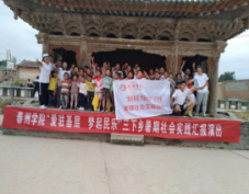 8月2日留守儿童和暑期实践队的老师同学们进行了一场实践汇报演出,队长对本次“三下乡”活动进行了总结。民乐县相关领导对志愿者们表示亲切慰问并致以诚挚感谢。至此,本次计科院2018“爱驻基层,梦起民乐”暑期“三下乡”社会实践活动已圆满结束。
