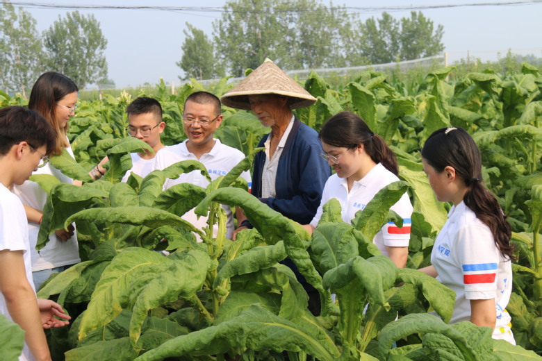 实践团队首先参观调研了当地烟叶、月季以及黄金梨特色种植基地,老农介绍了当地的气候、水文、土壤等种植条件。接着队员们深入农村走访农户,对当地的葡萄、猕猴桃、玉米等系列特色农作物的种植、销售进行详细地记录、调研。调研结果发现农户产品在销售方面还存在一些问题,如宣传力度不够、特色农产品的宣传与推介还有待进一步提升。此外,缺乏统一管理,以分散经营为主,专业化、经济化程度低。