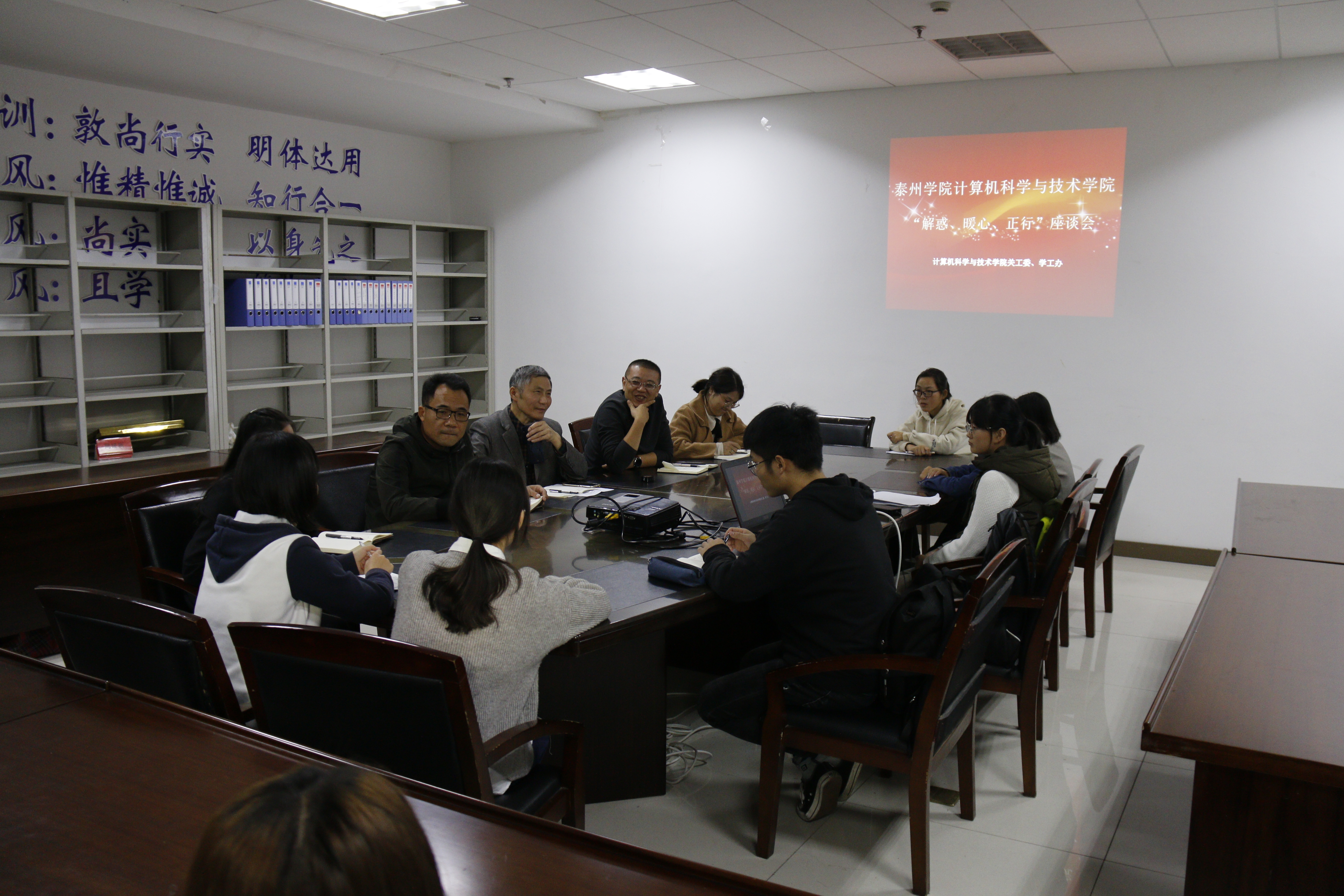 为进一步增强对“三困生”的帮扶力度,帮助和引导他们健康、快乐成长,11月15日上午,计算机科学与技术公司在会议室D2307召开了“解惑、暖心、正行”座谈会,公司党总支副书记、副经理陈茂国老师、院关工委副主任邹跃老师、学工办辅导员老师以及“三困生”部分代表参加了此次座谈。