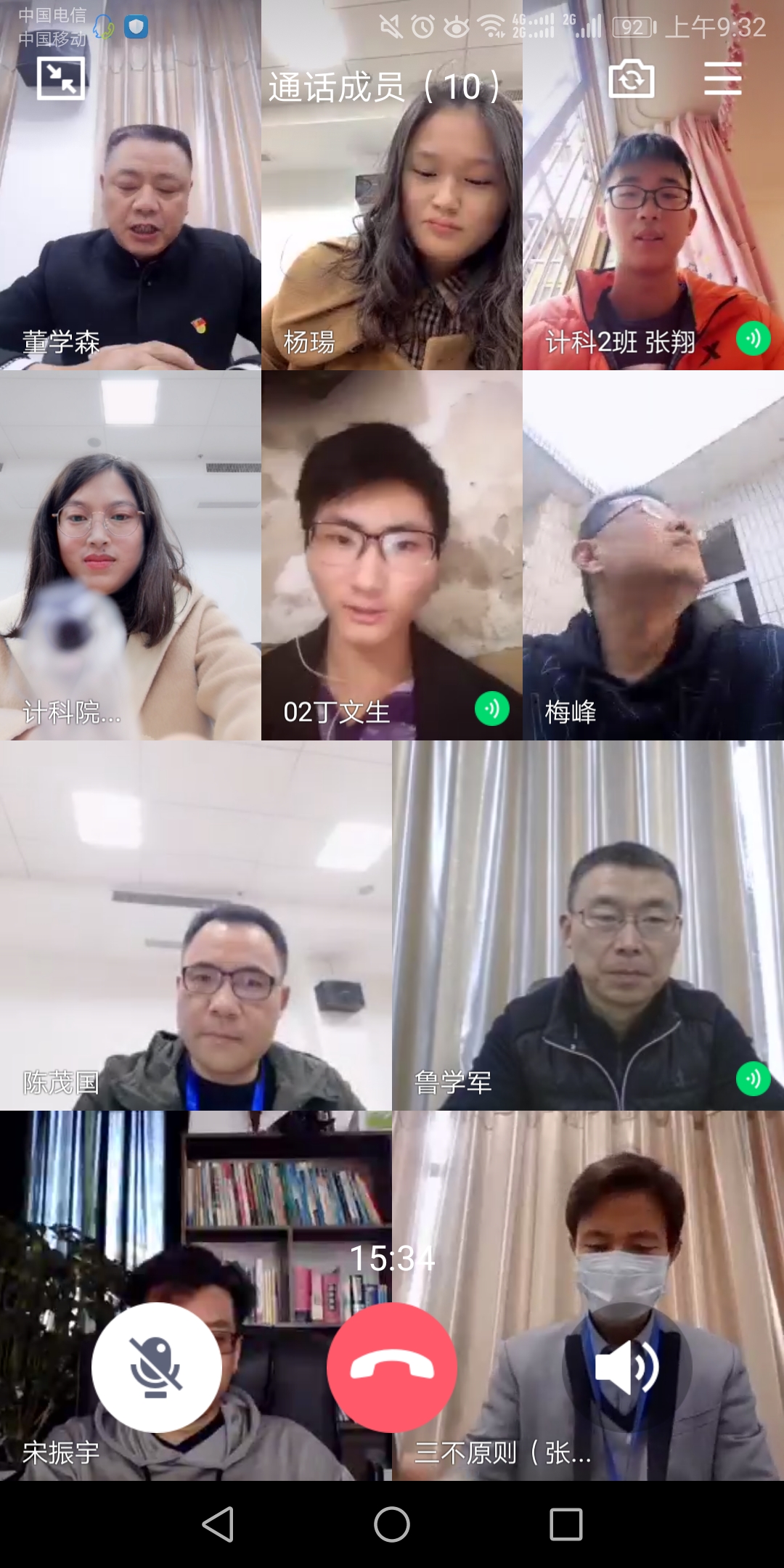 连线中,目前滞留在湖北省黄冈市19计科1班丁文生同学和湖北省孝感市19计科2班张翔同学分别向大家报告了身体状况、生活状况、学习状况、思想动态、当地疫情情况等,两位同学均表示家人和自己都很安全,请领导和老师们放心。