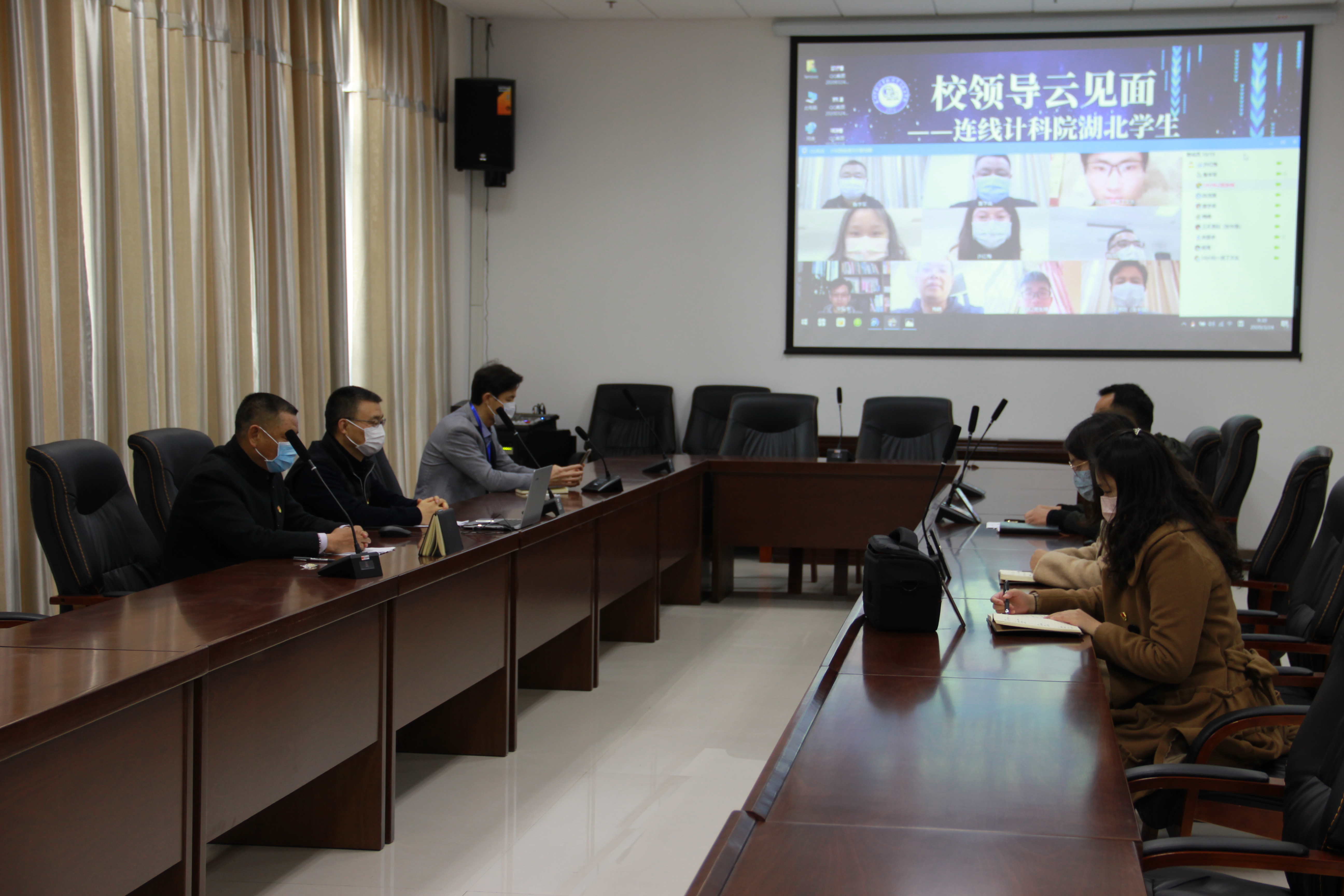 随着新冠肺炎疫情形势持续向好,但身处湖北疫区的同学们的健康和安全一直牵动着全校师生的心。3月24日上午,公司党委常委,副董事长鲁学军在行政楼会议室D2109视频连线计算机科学与技术公司滞留湖北的两位同学。会议由计科公司党总支书记董学森主持,计科公司党政领导,辅导员和班主任老师参加了“云见面”视频座谈。