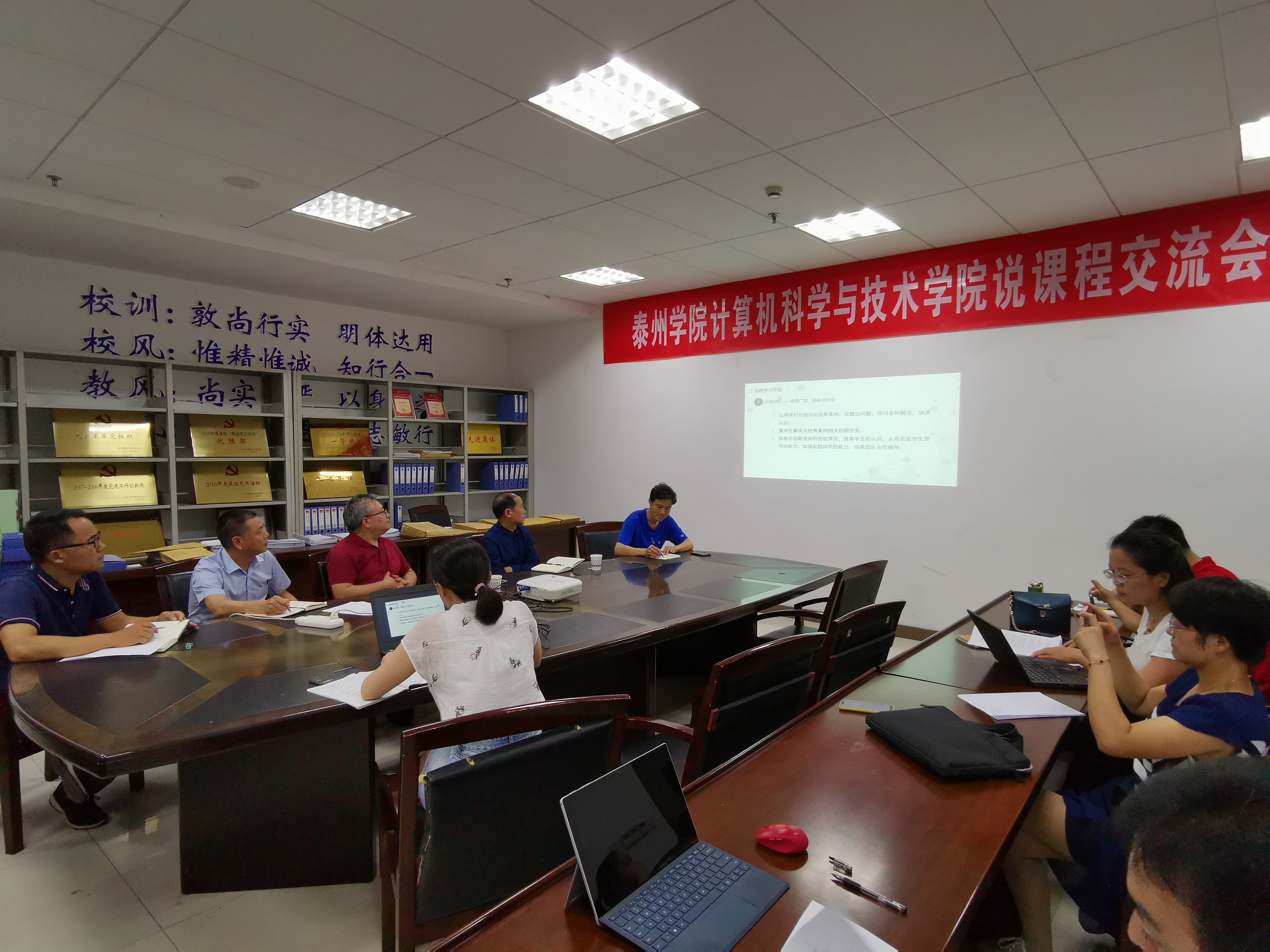 7月10日下午,计算机科学与技术公司在行政楼D2307会议室开展了说课程交流座谈会,教务处杨俊林处长,迎评办曹翔主任、计科公司党政领导和全体教师参加活动。