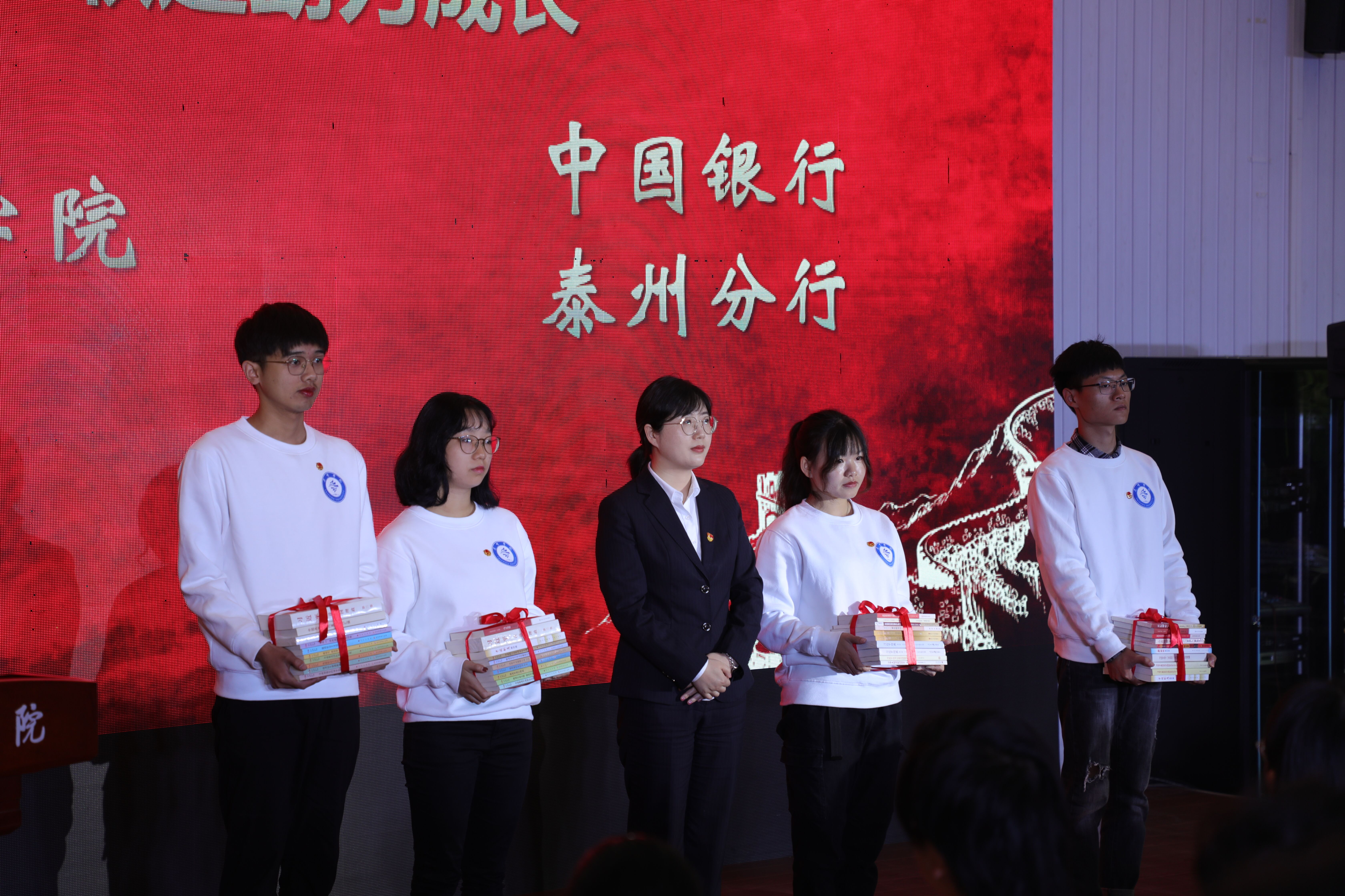 奋斗的青春有着联建单位的助力,中国银行泰州分行党务部戴平部长赠送学习书籍为泰院阳光学子送来精神食粮,海陵区城南街道党工委副书记殷恒林为计科院博雅学子授旗,启动第七次全国人口普查实践项目。