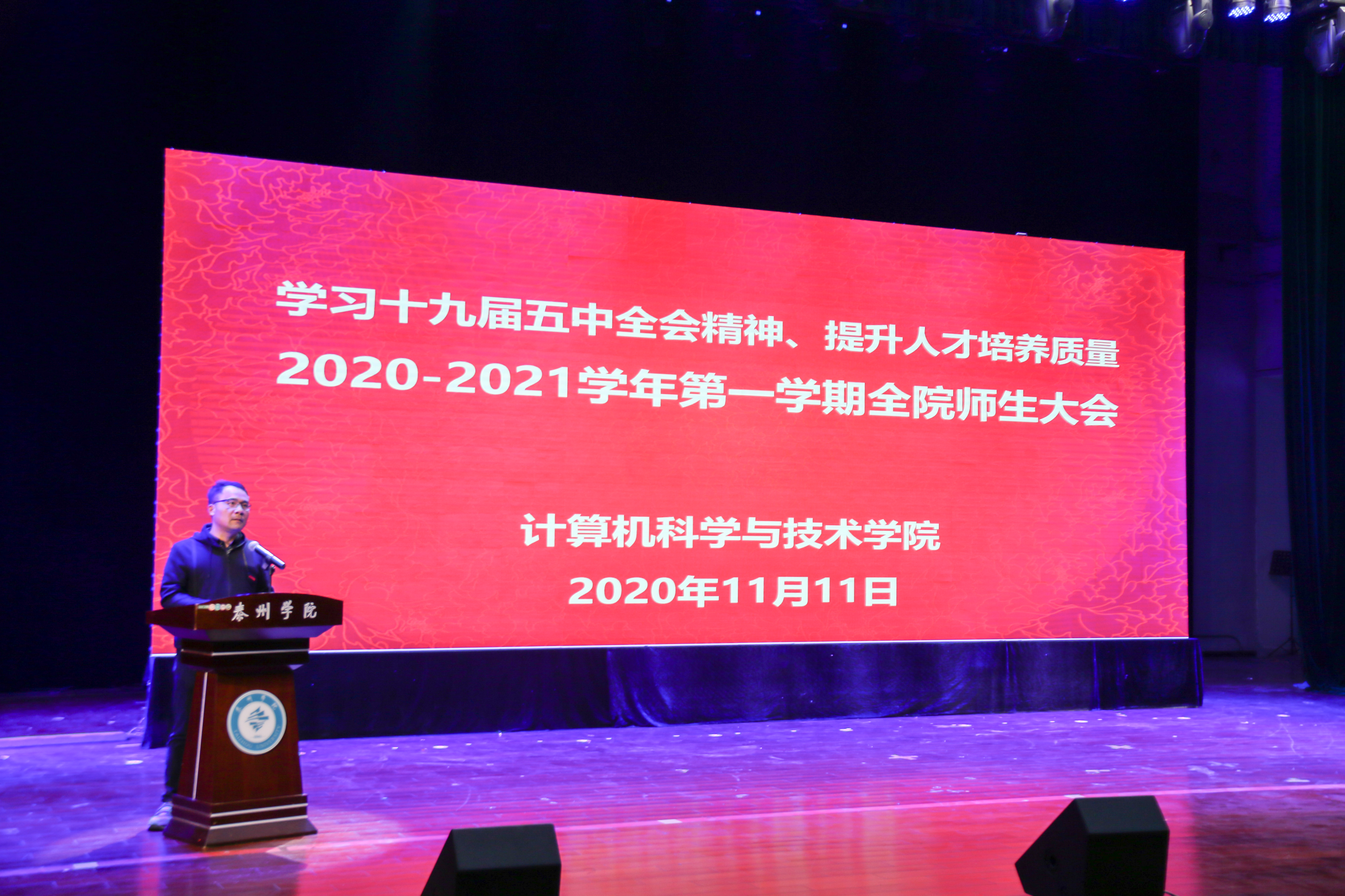 2020年11月11日下午16:00点,计算机科学与技术公司2020-2021学年第一学期全院师生大会在老员工活动中心举办,计科院全院900多名师生参加了大会。