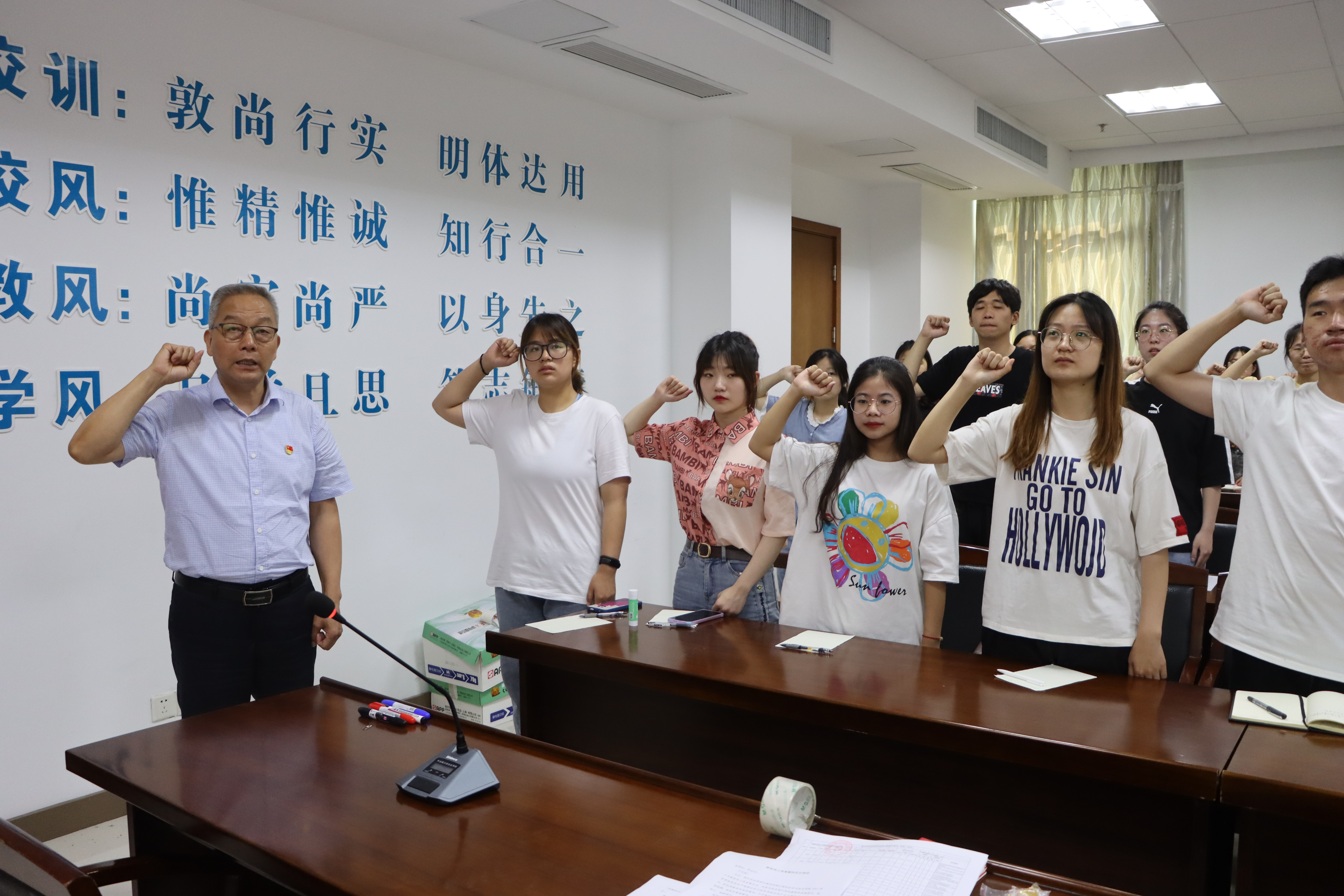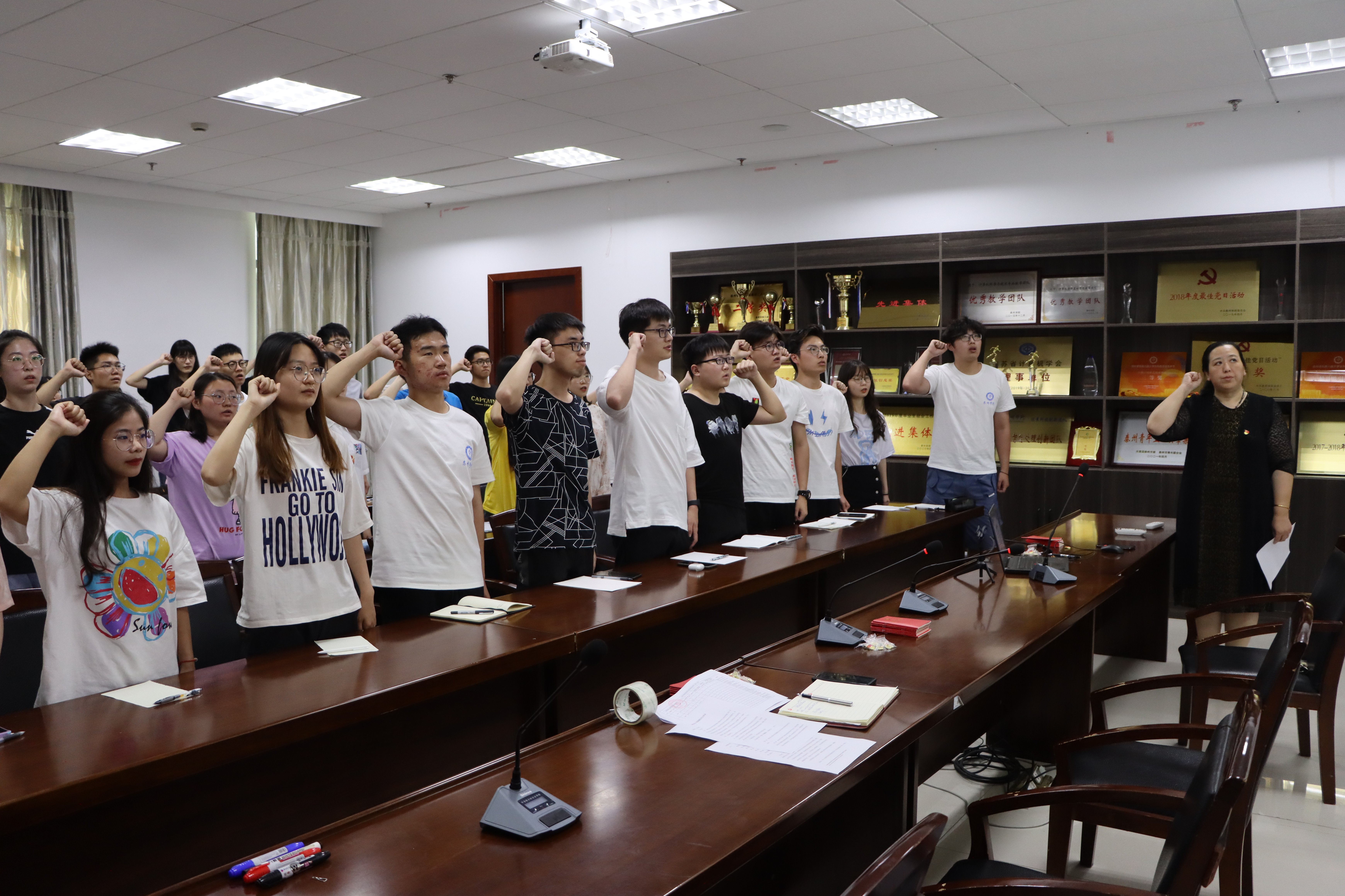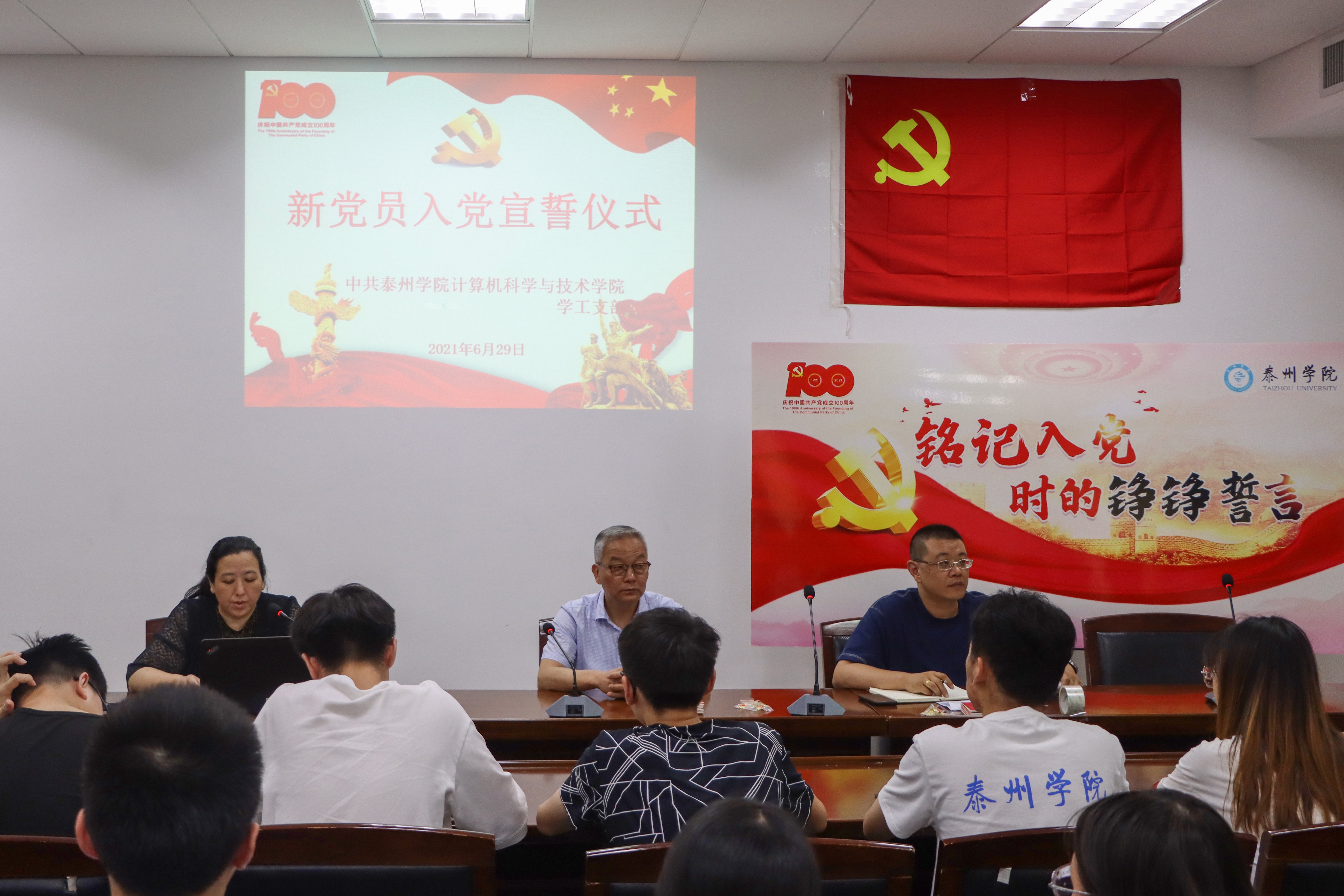 6月29日下午,中共谈球吧体育官网计算机科学与技术公司学工支部在D2307会议室举行了新党员入党宣誓仪式,公司党总支副书记栾吉老师、组织员王春进老师,以及支部全体成员参加了此次活动。