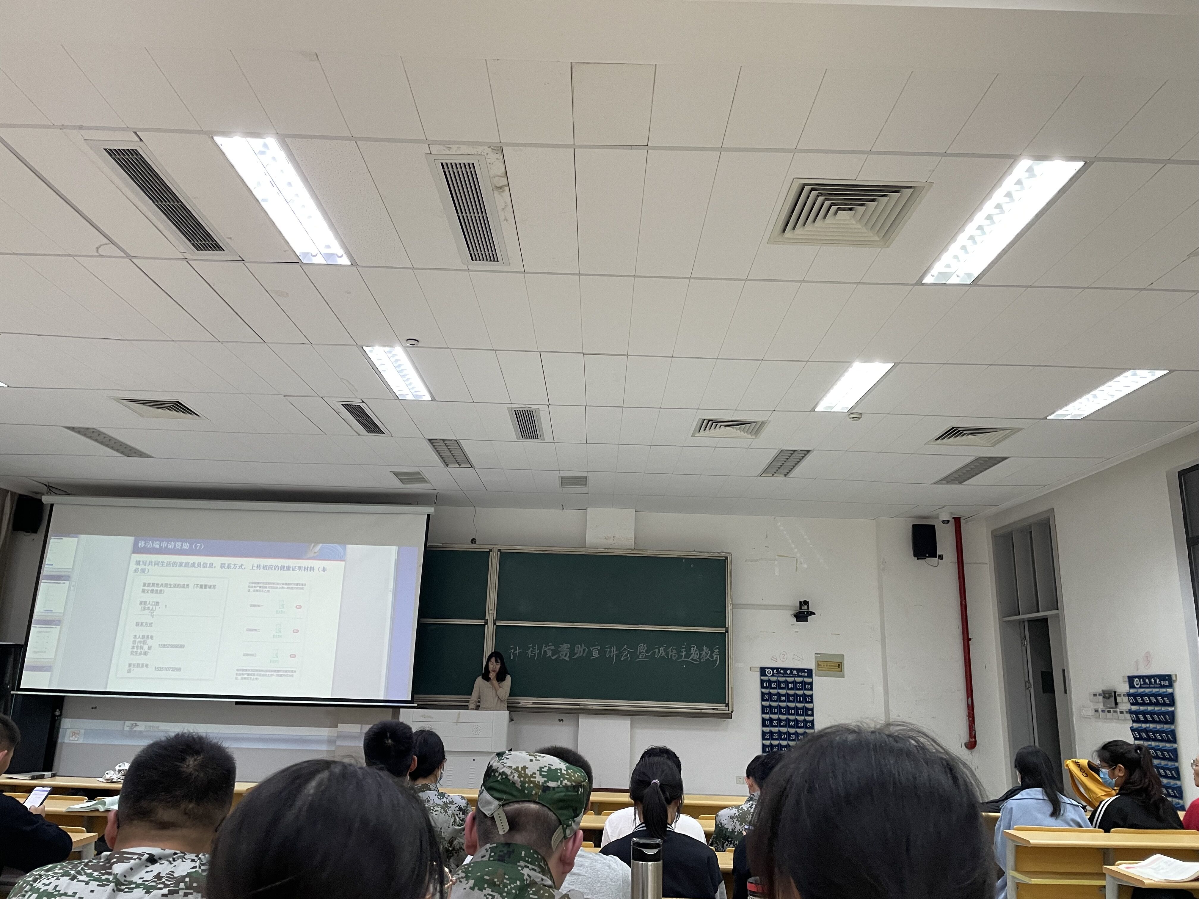 为深入宣传国家关于普通高校老员工资助政策,让新生了解国家资助政策体系,增强当代老员工的诚信意识,强化资助育人成效,计科院于2021年10月19日在教学楼A2108开展了新生资助宣讲会暨诚信主题教育活动,资助辅导员许红梅主讲,2021级新生代表参加了本次活动。