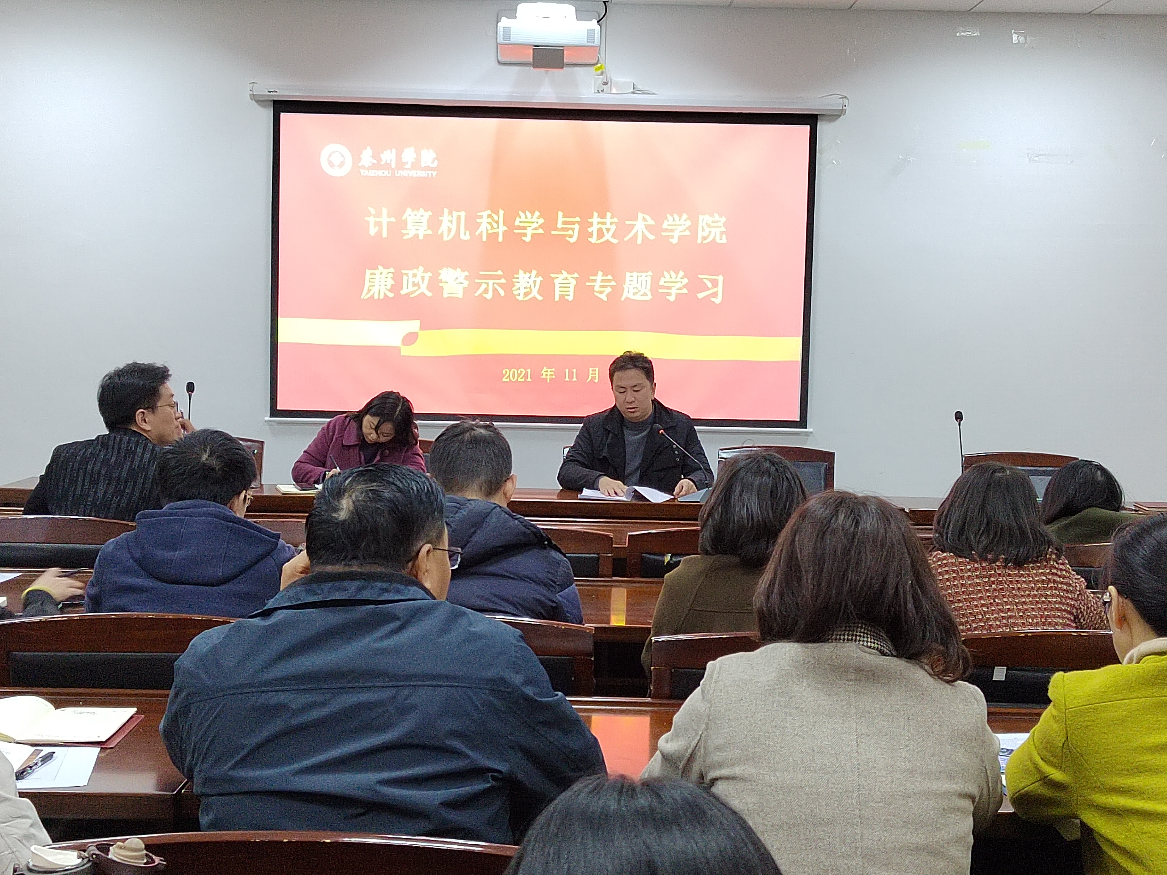 为进一步提升教职工清正廉洁意识,筑牢思想防线,守好廉政底线,2021年11月10日下午,计科院开展全院教职工廉政警示教育专题学习。