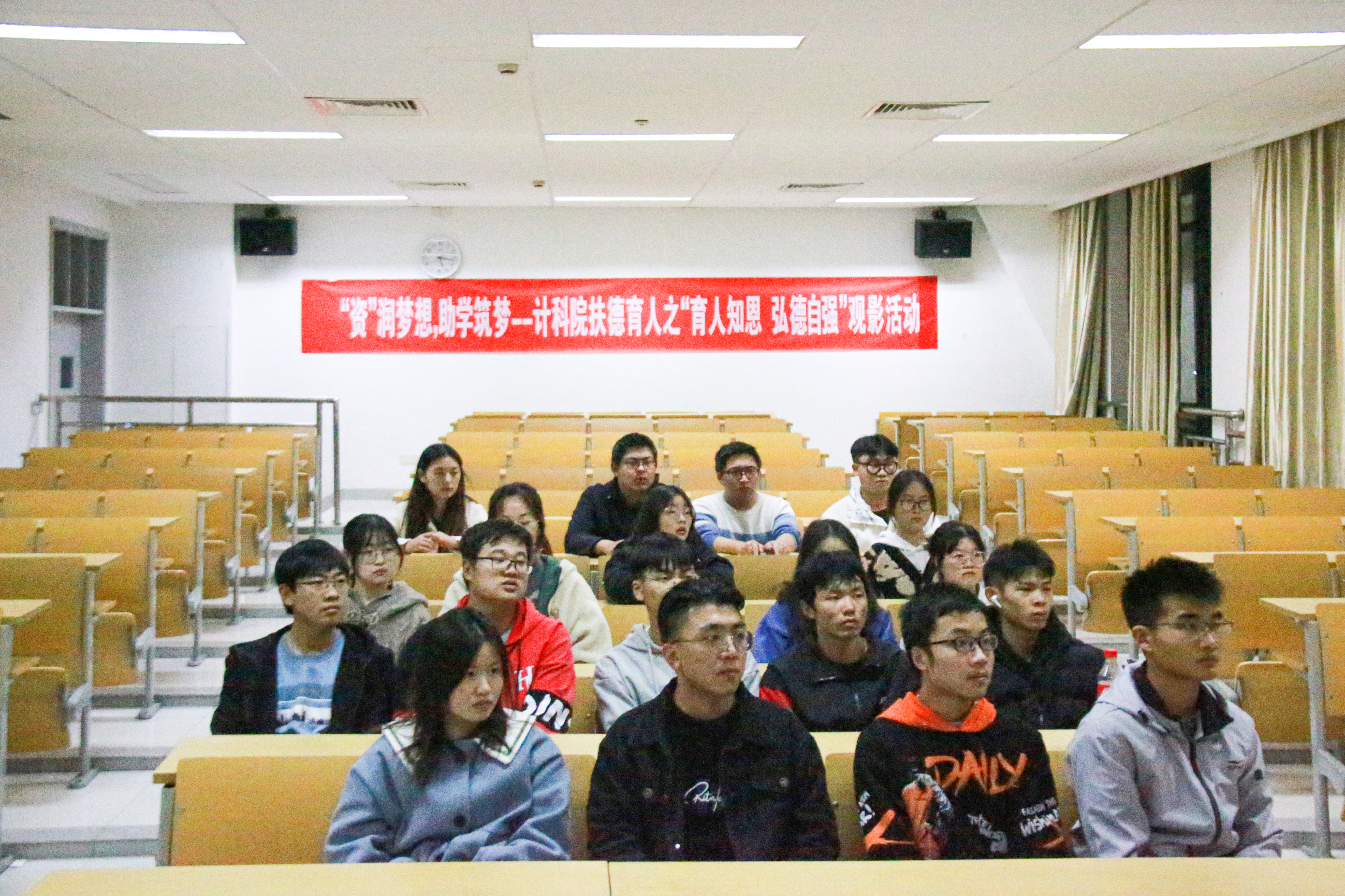 为弘扬爱国主义精神,践行扶德育人宗旨,发扬当代老员工追求真理、勇于探索的时代精神。11月21日晚,由计科院举办的扶德育人之“育人知恩、弘德自强”观影活动在教学区A3407举行。