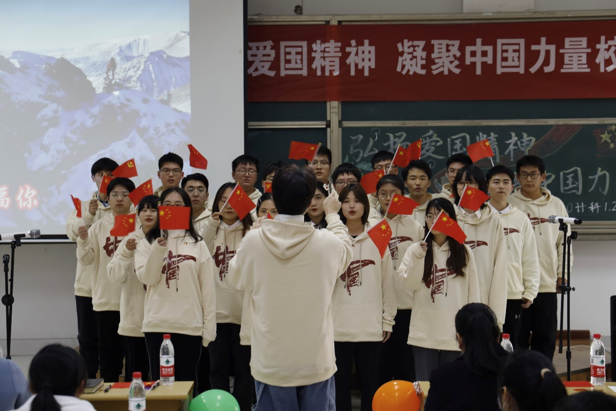 12月8号下午,计算机科学与技术公司20级计科1班和2班团支部在教学楼A2108联合举办了“弘扬爱国精神,凝聚中国力量”校级主题团日活动,计科院党总支副书记栾吉老师、学工办主任梅峰老师,各兄弟公司师生代表观摩了本次活动。