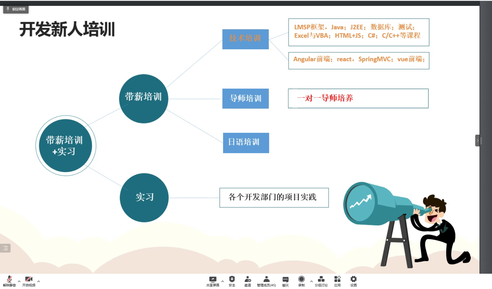 会议伊始,中邮通建设咨询有限公司人事翁经理介绍了公司的概况、企业文化、晋升空间以及应聘要求等多个方面的内容;凌志软件股份有限公司人事从经理播放了公司宣传片,并在宣传片的基础上介绍了公司的发展历程、如何进行晋升、工资待遇、如何应聘以及应聘要求等多个方面的内容。会议最后,两位经理都对同学们提出的问题进行线上答疑,对同学们提出的各类相关问题进行深入细致解答。