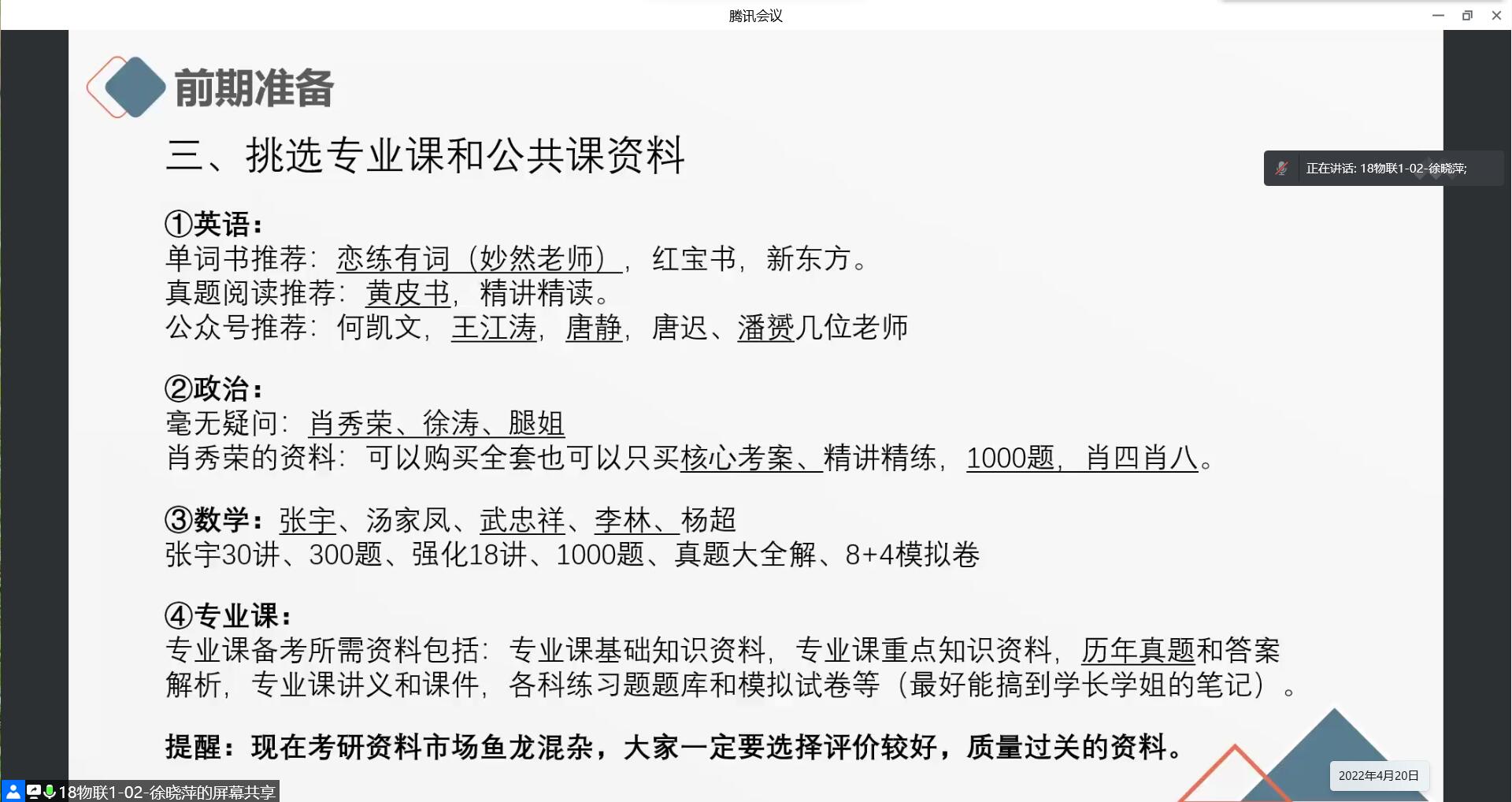 为进一步提高同学们的考研热情,明确考研目标,掌握相关考研技巧。计科院于4月20日晚19:30在线上举办了老员工讲坛。