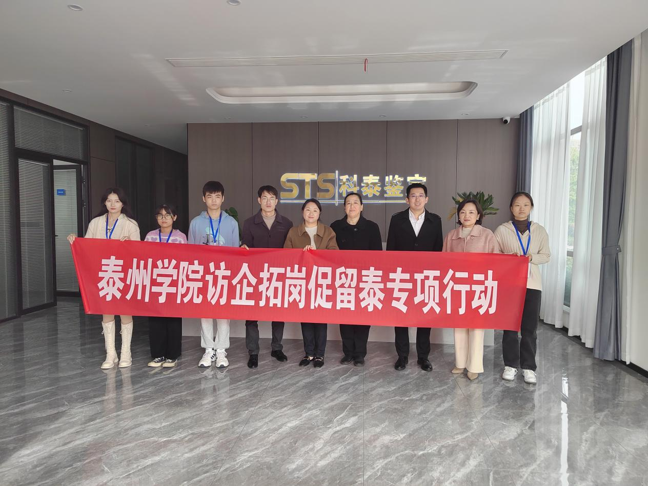在科泰检测技术服务(泰州)有限公司。栾吉介绍了公司的基本情况,发展现状等,徐艳经理就公司本科生培养、就业等进行了介绍,科泰朱烨总经理就公司基本情况、2023届岗位需求等进行交流。双方在一致认为,在今后加强全方位的合作,共创就业实习、产教融合等领域合作新机遇、新亮点,努力形成产学研合作的新高点。