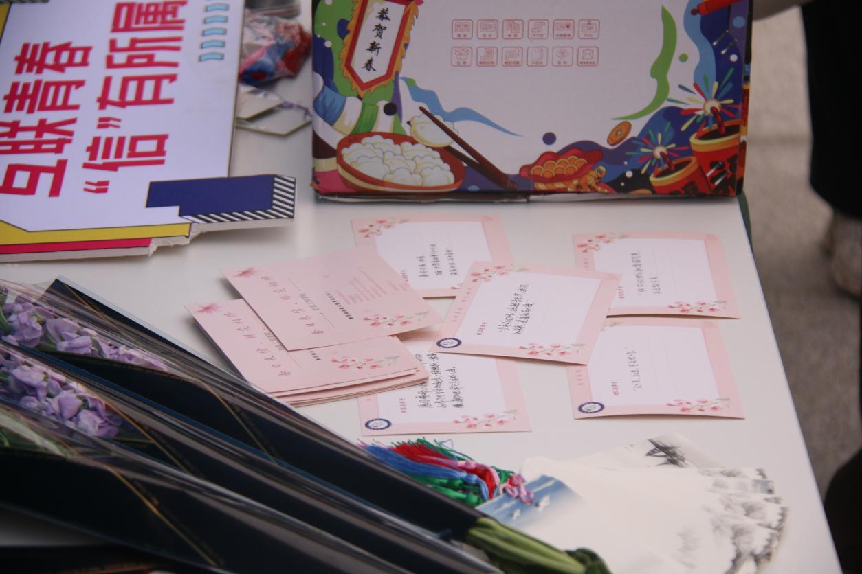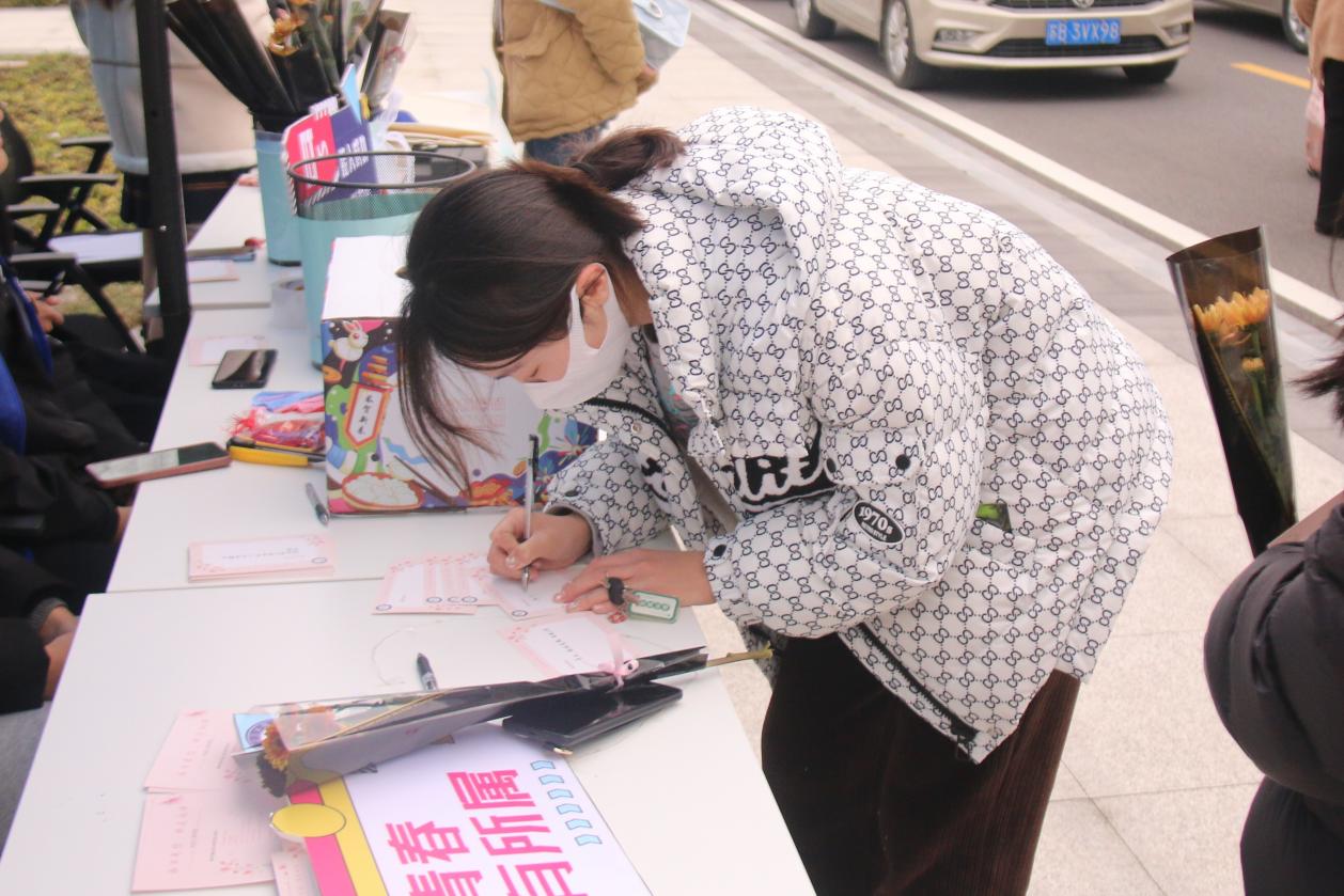 活动期间,大家纷纷被美丽的花束及礼品吸引前来围观,在志愿者们热情招呼下,现场互动氛围十分融洽。在“互写卡片”环节,每位参与者都可以从盲盒中抽取来自老师及志愿者们手写的明信片,美好的祝愿在印着“心想事成”代码的明信片上相互传递,让返校学子感受到了公司真挚的祝福与心意。