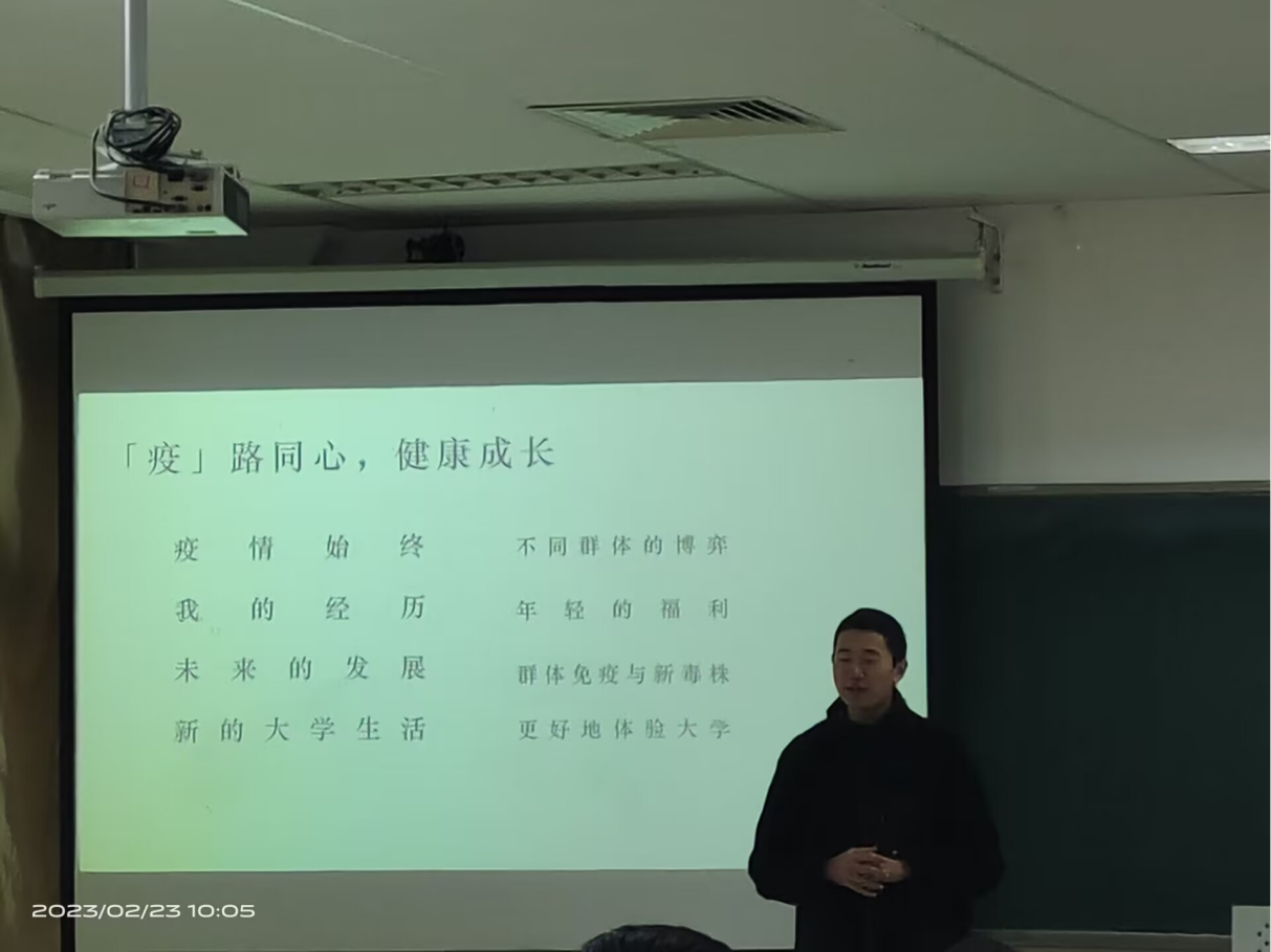 首先,由各班分享者宣传预防疫情的知识、疫情期间的感受及交流阳康的注意点;接着,其他同学根据分享者的话题进行分组讨论;最后,由此次活动的组织者进行总结发言,提醒各位同学做好自己健康安全的第一责任人。