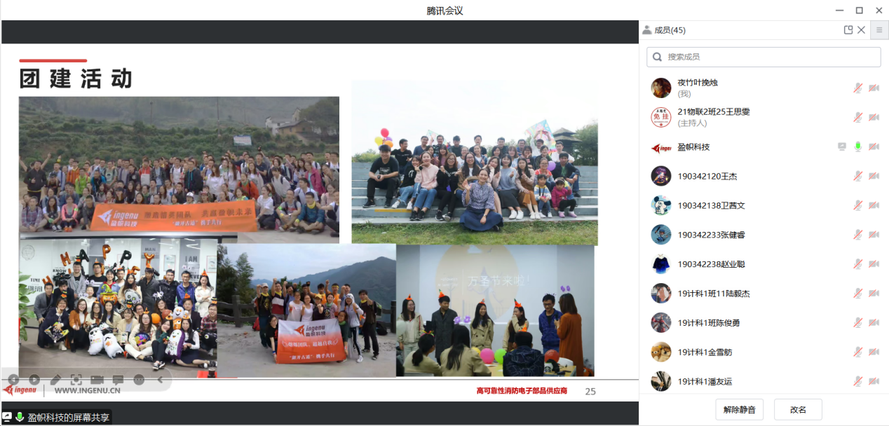 招聘会上,盈帜科技(常州)有限公司人事经理高璐首先介绍了公司的基本信息与企业文化,并展示了消防电源、消防广播、消防电话等特色产品。随后,高经理从公司沿革、资质证书、产品研发入手,介绍了公司自身的优势条件。接着,高经理叙述了员工的发展平台、薪酬福利、公司的团建活动,展现了公司丰厚的福利待遇以及广阔的发展空间。最后,高经理对同学们提出的一系列问题进行了线上答疑。