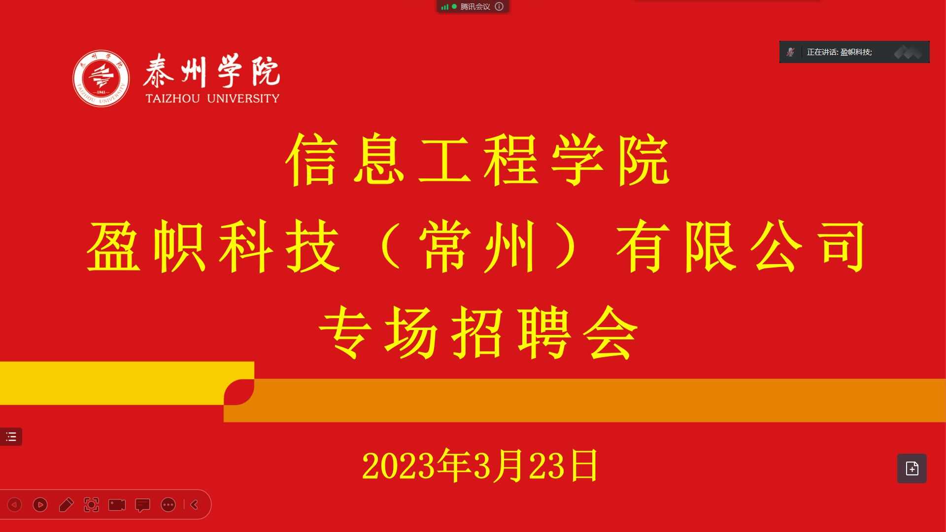 为帮助2023届毕业生解决就业问题,3月23日下午,谈球吧举办盈帜科技(常州)有限公司线上专场招聘会,公司党总支书记朱诚参加会议。
