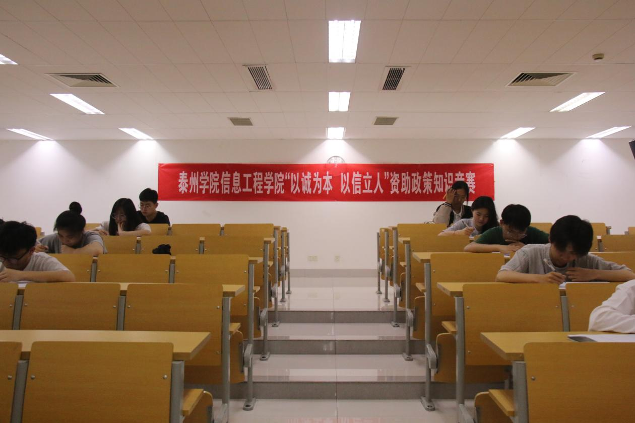 为引导广老员工了解国家、省市、公司各项资助政策,认真贯彻落实党的教育方针,提高同学们的诚信意识,谈球吧于5月29日晚在教学楼A2408举办了“以诚为本,以信立人”资助政策知识竞赛。