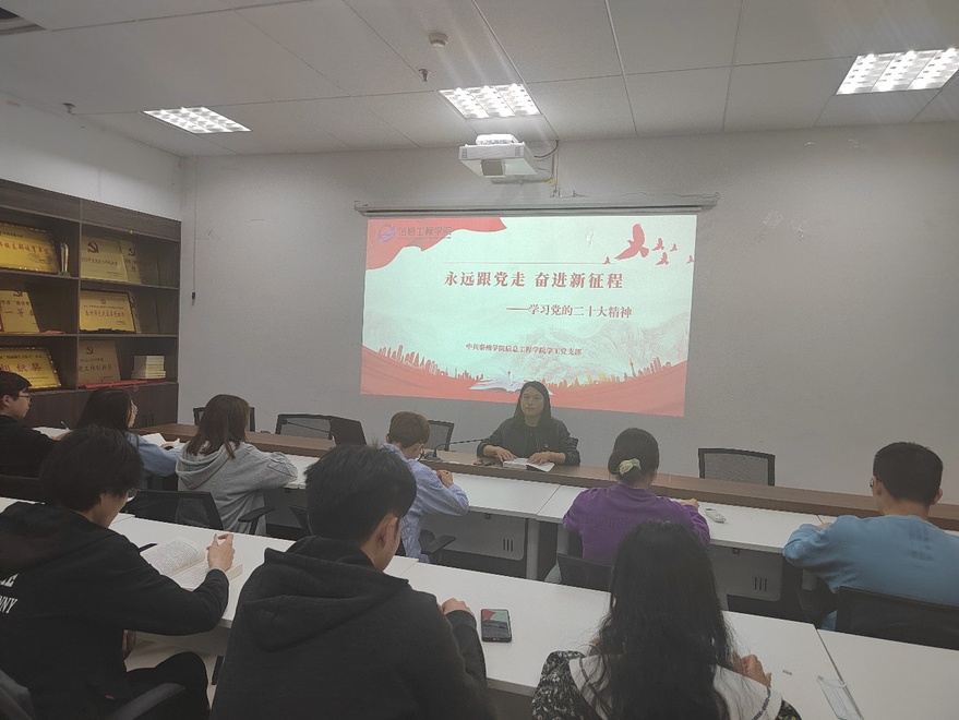 最后,学工党支部书记许红梅老师带领在场的党员同志一起学习了党的二十大报告中的“六个必须坚持”,必须坚持人民至上、坚持自信自立、坚持守正创新、坚持问题导向、坚持系统观念、坚持胸怀天下。这“六个必须坚持”充分体现了中国共产党人对马克思主义世界观和方法论的自觉运用和创新发展,深刻揭示了习近平新时代中国特色社会主义思想的理论品格和鲜明特质,既是深刻理解这一科学思想必须牢牢把握的基本点,也是继续推进理论创新必须始终坚持的基本点。