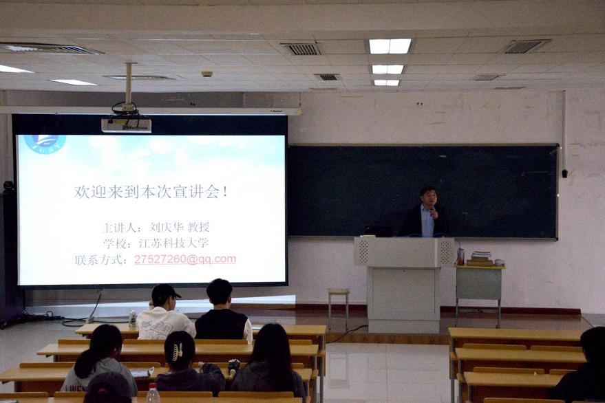 刘庆华教授结合江苏科技大学专业实际对考研的流程内容考研的背景与现状、考研的必要性以及考研案例进行了详细的讲解,激发了同学们备考的积极性,让他们更加有信心地面对考试。随后,廖磊老师结合工作经历,为同学们在考研的特点及趋势、院校与专业的选择、高效备考的方法和建议进行了介绍在考研形势分析中,廖磊老师对考研人数、录取比例进行了数据统计和分析帮助同学更好地了解考研现状