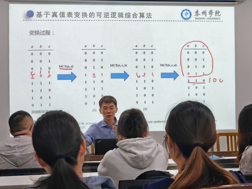 最后,谈球吧教师,博士,副教授朱鹏程博士带来了题为“面向NISQ架构的可逆逻辑线路变换”的讲座。朱博士详细阐述了可逆逻辑线路变换在NISQ架构下的研究进展,以及其在量子计算领域的重要应用价值。