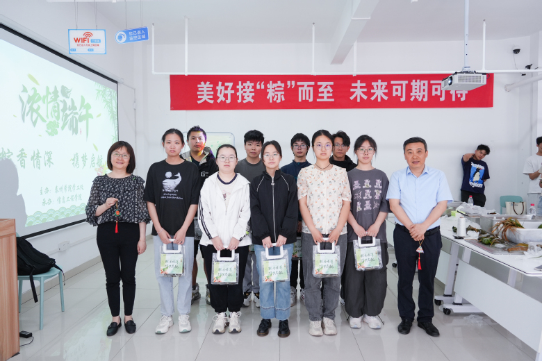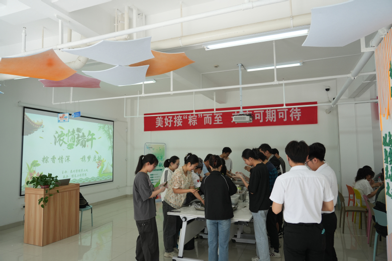 活动现场粽香四溢,温情满满。一张张青春洋溢的面孔,一双双灵巧的手,在绿叶与糯米之间穿梭。毕业生们在老师的指导下,从最初的生疏到渐渐熟练,每一只粽子都承载着他们对校园生活的不舍与对未来的憧憬。另一边的香囊制作区也是热闹非凡,五彩斑斓的丝线、精致的布料以及各式各样的香料摆满了桌面,同学们按照传统工艺,一丝不苟地缝制着自己的小作品。这些香囊不仅寓意吉祥,更成为了毕业生们对校园、对老师、对同窗深深情感的寄托。