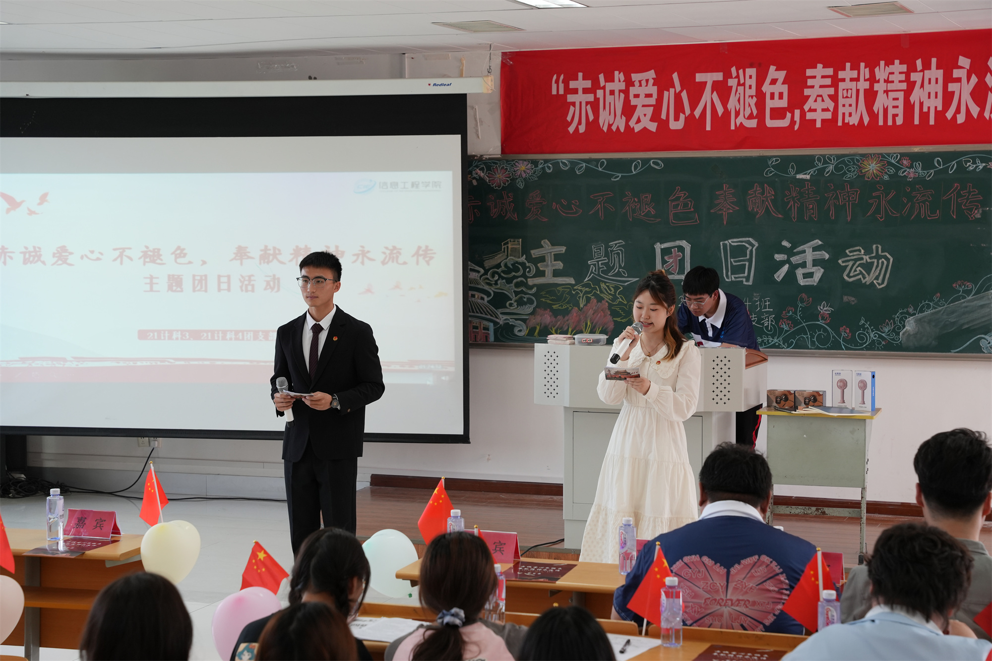 5月19日下午,21计科3班、4班团支部在教学楼A2408联合举办“赤诚爱心不褪色 奉献精神永流传”校级主题团日活动,兄弟公司师生代表现场共同观摩了此次活动。