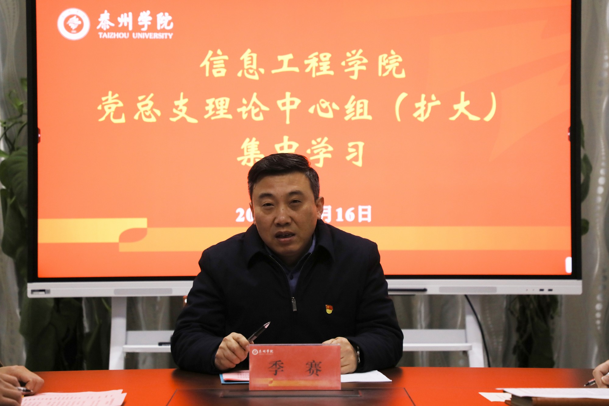 12月16日下午,公司党委副书记、董事长季赛在D2321会议室巡学旁听公司党总支理论学习中心组集中学习党的二十大精神。公司党总支书记朱诚主持会议,公司党总支理论学习中心组全体成员、科级以上人员和辅导员等参加学习。