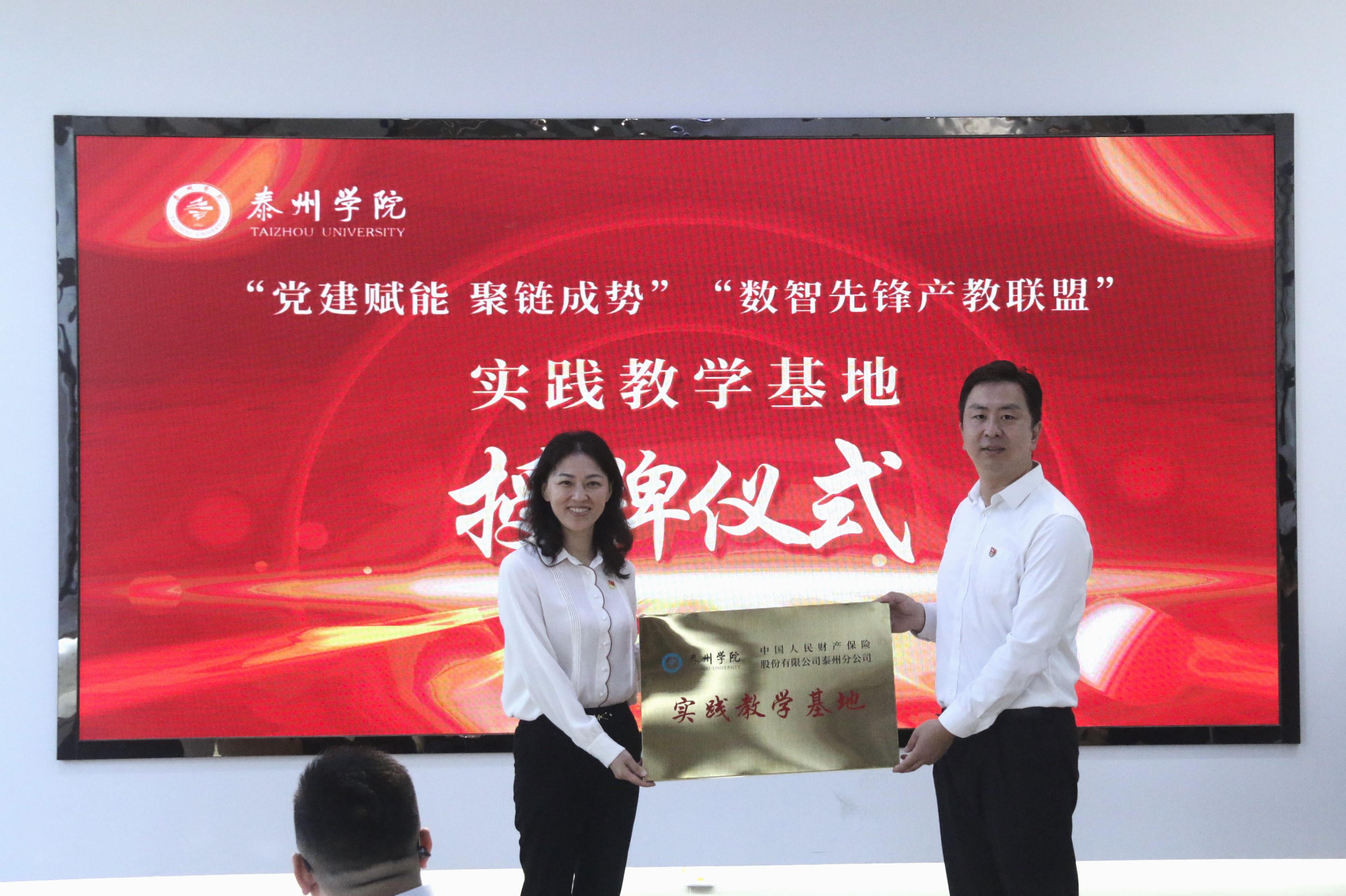 第二阶段是签约和授牌仪式。仪式现场,杨智红与政府、企业党组织代表聚焦“产教融合、校企合作”开展工作交流,紧扣共建“关键点”和“着力点”,在党建引领推动实现党建链、人才链、创新链“三链”融合等方面达成共识,签订了由校政企多方共同参与的“数智先锋产教联盟”党建协议书。谈球吧副经理钱进作为公司代表授予中国电信股份有限公司泰州分公司、中国人民财产保险股份有限公司泰州分公司“共建实践教学基地”牌子,授予市数据产业集团、金泰环保热电“共建就业基地”牌子。