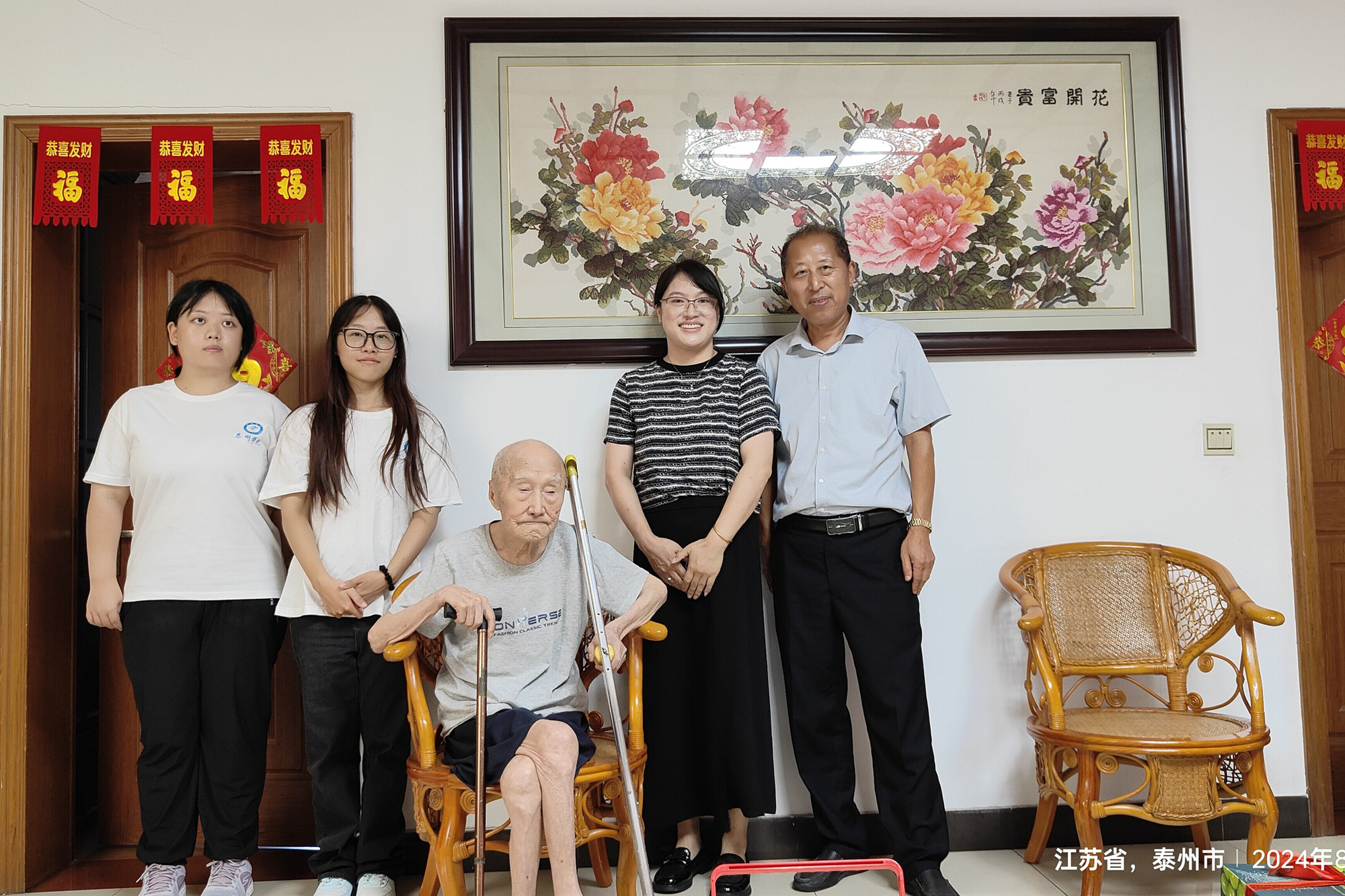 8月1日,在中国人民解放军建军97周年之际,谈球吧师生代表前往泰州姜堰区蒋垛镇,探望慰问109岁高龄的老红军、老战士吴九同志。