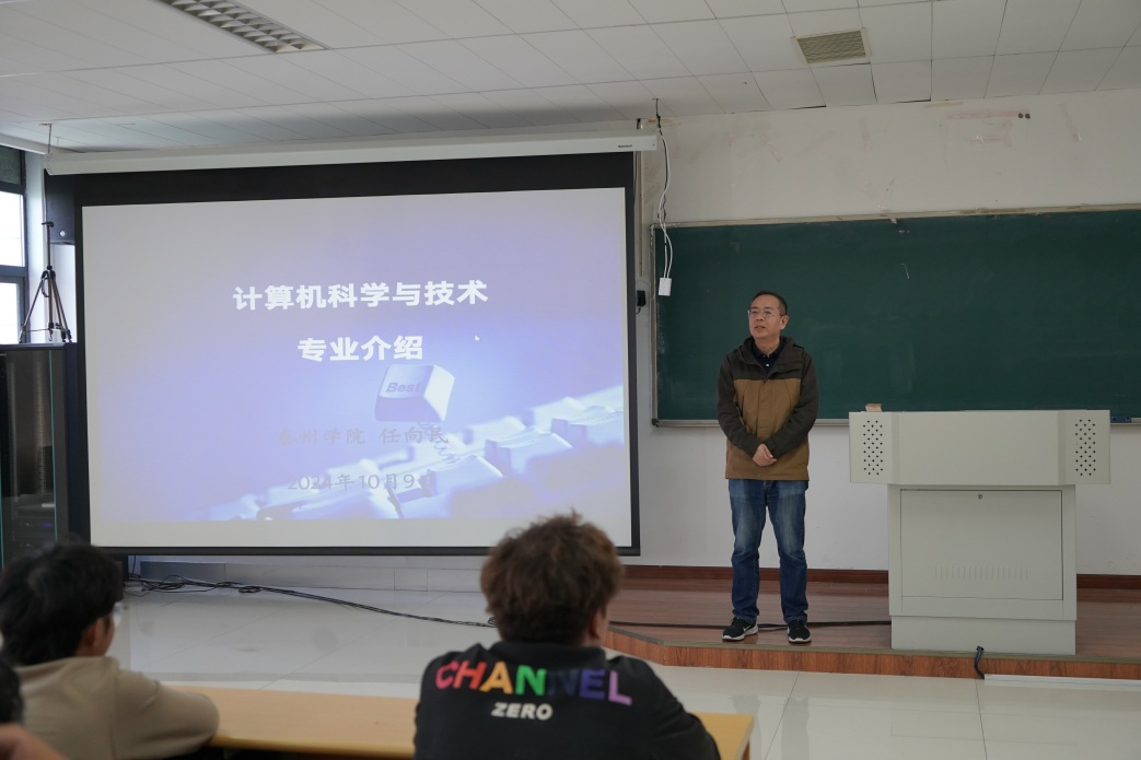 计算机专业负责人任向民教授对学科背景进行了详细介绍并介绍了计算机科学与技术专业人才培养方案。他指出,计算机学科不仅是信息科学的基础,也是各个学科研究的重要工具。随着科技的迅速发展,计算机技术已经渗透到金融、医疗、教育等多个领域,成为推动社会进步的重要力量。任教授介绍到,计算机专业的知识结构主要包括工程数学、编程基础、数据结构和算法设计等。为了提升个人能力,他鼓励新生在大学期间积极参与实习和项目实践,以培养综合素质和专业技能。他强调,个人的努力与能力在就业中同样不可忽视,只有将理论与实践相结合,才能在未来的职场中立于不败之地。希望同学们能够抓住机遇,不断提升自己,为未来的职业发展打下坚实的基础。