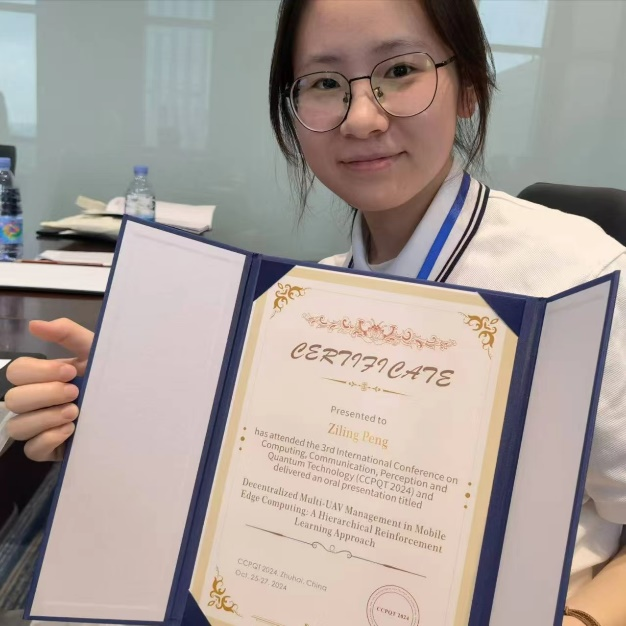 2024年10月25日至27日,谈球吧大三员工彭紫凌同学在珠海参加了第三届计算、通信、感知与量子技术国际会议(CCPQT 2024),全英文宣讲了学术论文,并与众多学者就移动边缘计算相关学术问题进行了科学研讨。