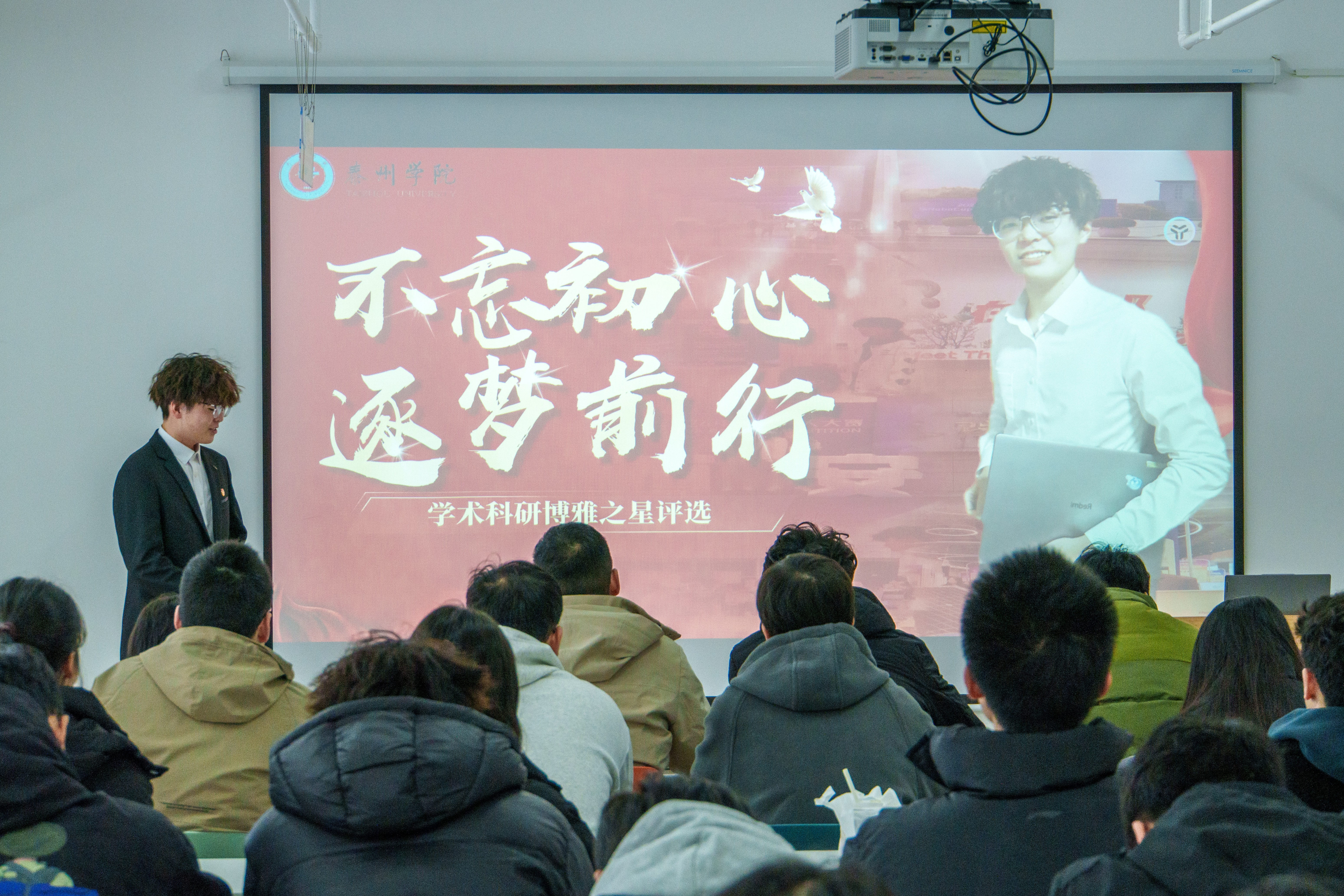 评选会现场,13位参评员工按全面发展类、多才多艺类、学术科研类、创新创业类、社会实践类等类别依次进行个人风采展示,生动展现了自己在学习、实践中的成果与收获,他们同台竞技,各展风姿,赢得了现场观众的阵阵掌声。