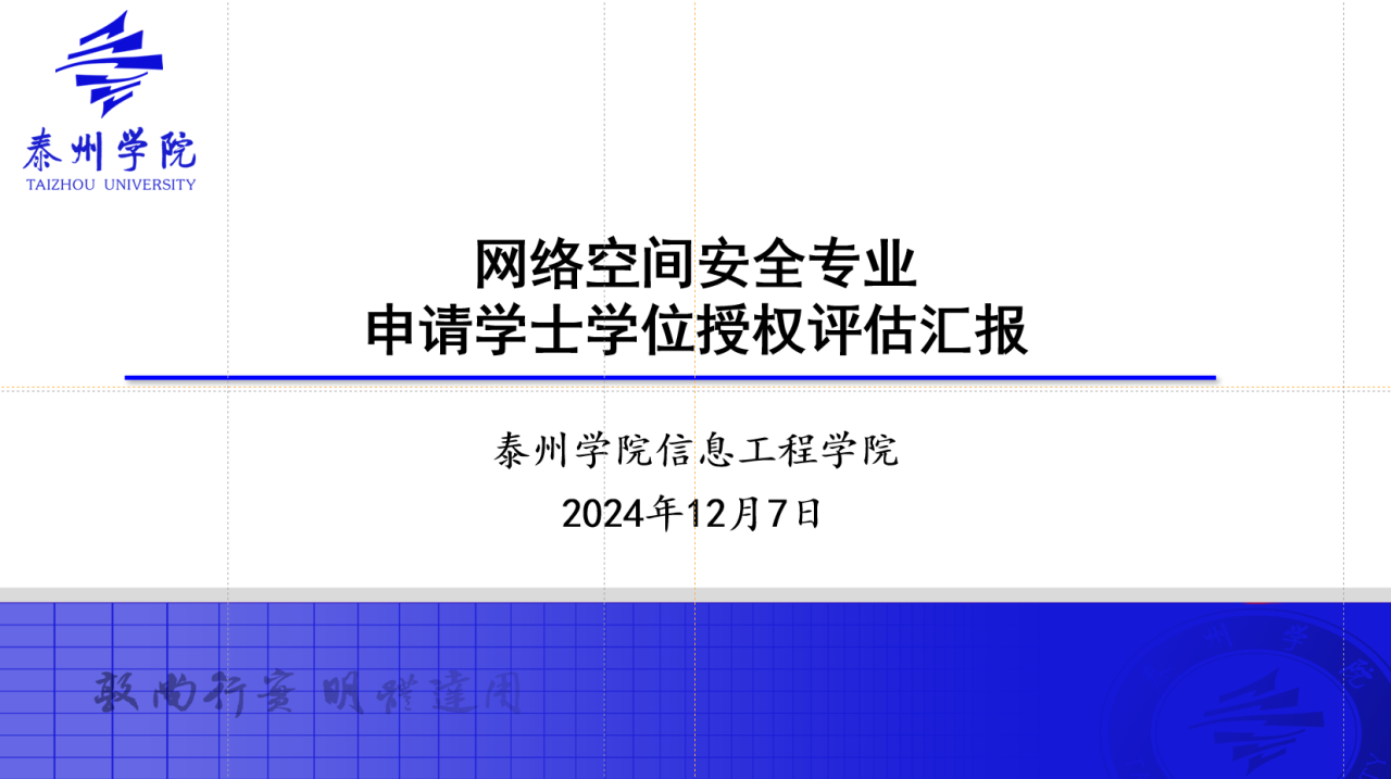 按照江苏省学位委员会关于做好学士学位授权审核工作的要求,专业负责人朱鹏程副教授从专业定位、团队队伍、培养方案和课程设置、教学条件、教学规范、质量保障等方面进行了汇报。专家组评阅申报材料,检查专业建设相关资料,并就有关问题进行质询,对拟授权专业的建设情况进行集中评议。反馈会上,专家组充分肯定了专业所取得的办学成绩,经专家组投票表决,一致通过了网络空间安全专业的新增学士学位授权申请。