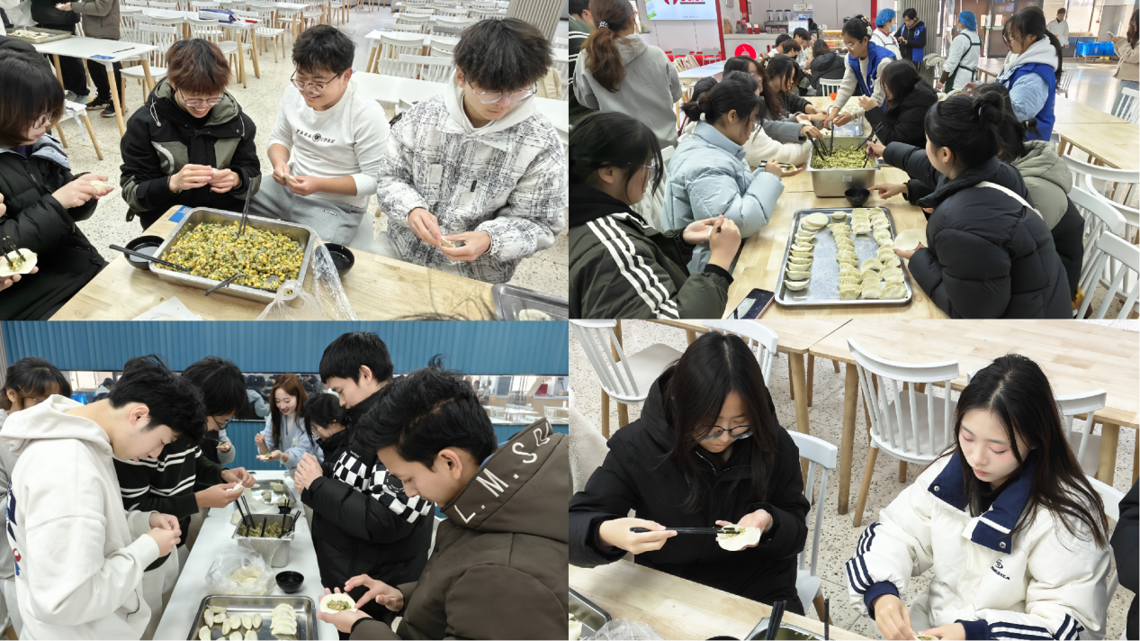 活动中,同学们跟随主持人的介绍,了解冬至的历史、传统习俗以及活动的安排和规则,并按小组进行包饺子。一手拿皮、一手填馅、双手合拢成形态,大家在欢乐氛围中团结合作,相互交流,增进情感,亲身体验到了冬至这个传统节气所带来的乐趣,同时也让同学们感受到了漫天寒意中的团圆与温情。本次活动也吸引了职工的参与,24级职工代表加博表示,此次活动让他深刻感受到了中国传统文化的魅力。