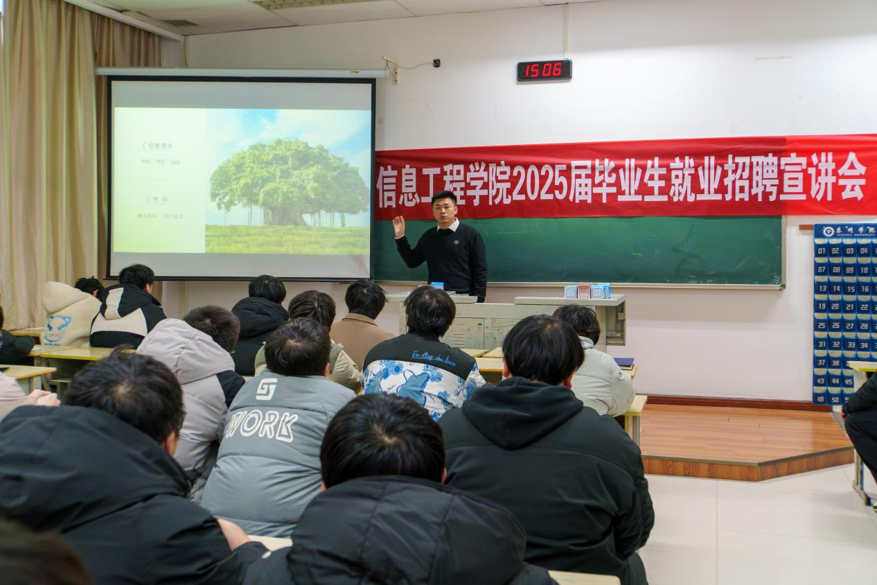 现场,公司项目经理李荣威作企业文化宣讲,带领同学们了解公司的发展历程、产品和理念、企业文化和未来发展战略,重点介绍了入职后的职业发展路径,并表达了对优秀人才的需求和渴望。