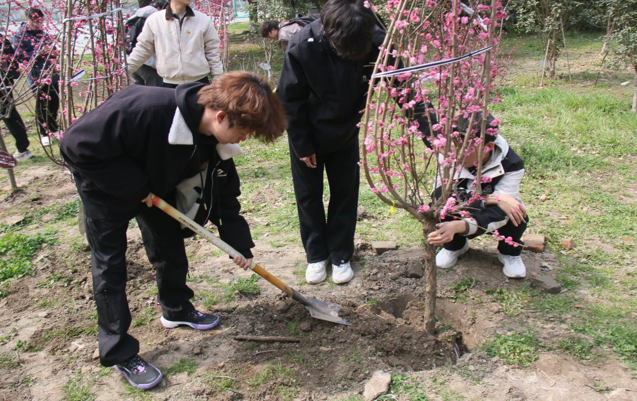 活动最后,全体师生移步植树区,以班级为单位栽种下属于24级的“班树”。一棵棵红梅在春风中昂然挺立,焕发出勃勃生机,为大地添上一抹亮色。