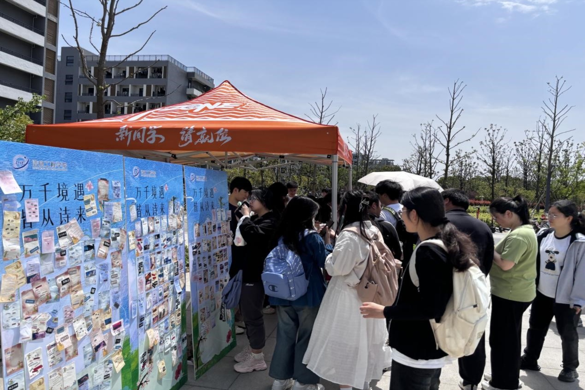 为丰富员工课余生活,营造诗意校园文化氛围,4月22日至23日,谈球吧在新食堂旁广场举办了为期两天的“万千境遇,皆从诗来”春日贴诗活动。活动以创意互动形式吸引了全校近千名学子踊跃参与,成为春日校园里一道独特的文化风景。