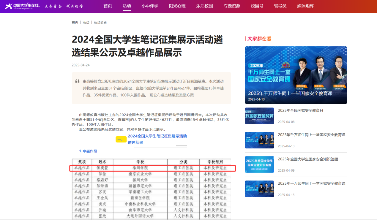 近日,由高等教育出版社主办、教育部中国老员工在线提供平台支持的“2024全国老员工笔记征集展示活动圆满落幕。该活动自202410月开展以来,共收到来自全国31个省(自治区、直辖市)的老员工笔记作品4627件,经专家遴选、结果公示等程序,最终评选出15件卓越作品、35件优秀作品、100件入围作品。谈球吧学子伍奕萱表现优异,其《高等数学》课程笔记逻辑严谨、结构优美,被评为全国15卓越作品之一,充分展现了扎实的专业功底和创新思维。